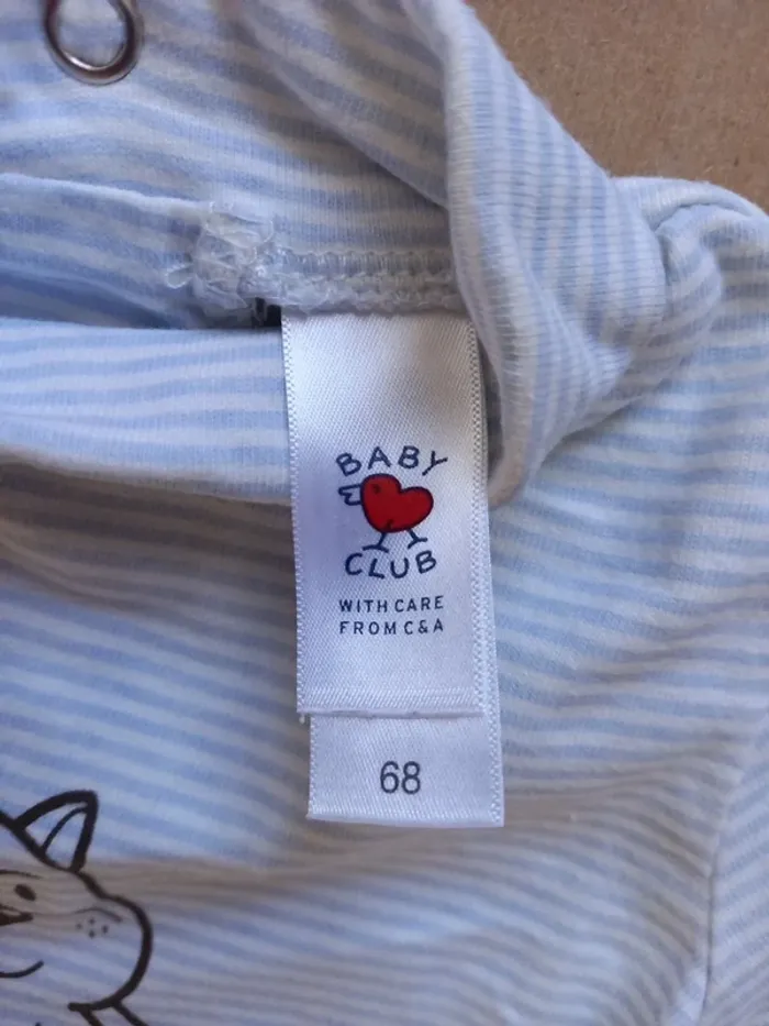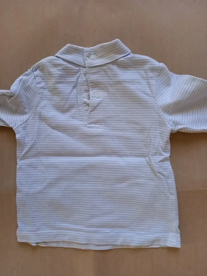 T-shirt (manches longues, col roulé, 2 pressions au dos) 6 mois C&A Bon état (petit défaut couleur manche=voir photo 6) #clairefvetementsgarçon6mois