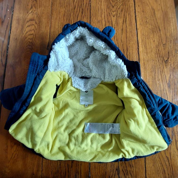 Manteau hiver, capuche fourrée sherpa et interieur micropolaire. Taille 6 mois, 68 cm