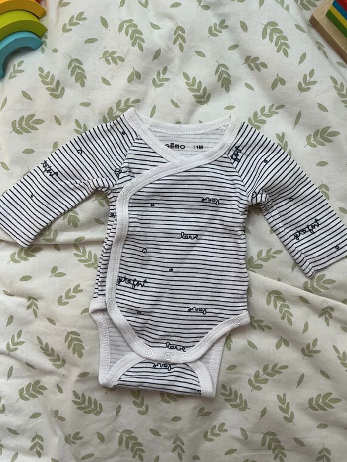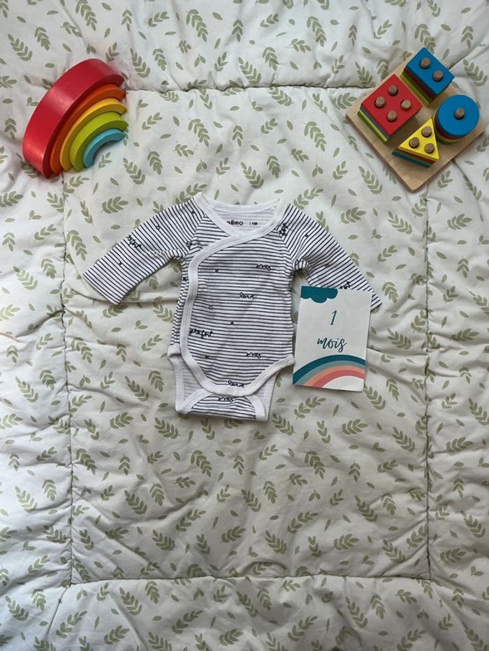 body manches longues blanc rayé marine ouverture devant 1 mois gémo - photo numéro 1