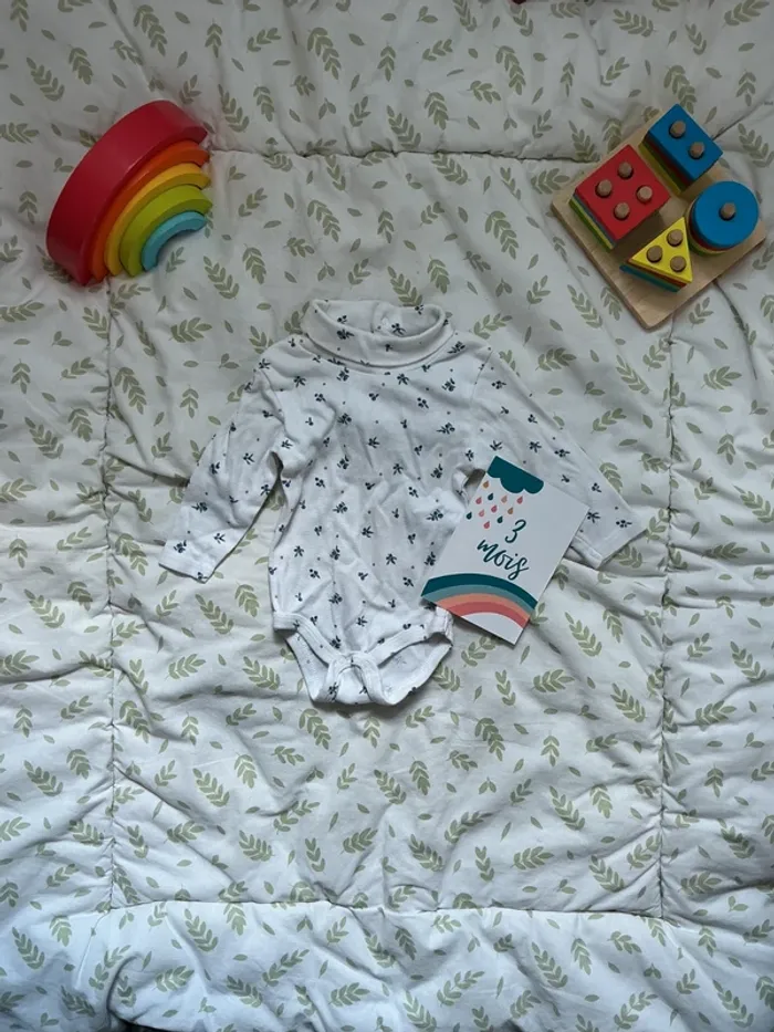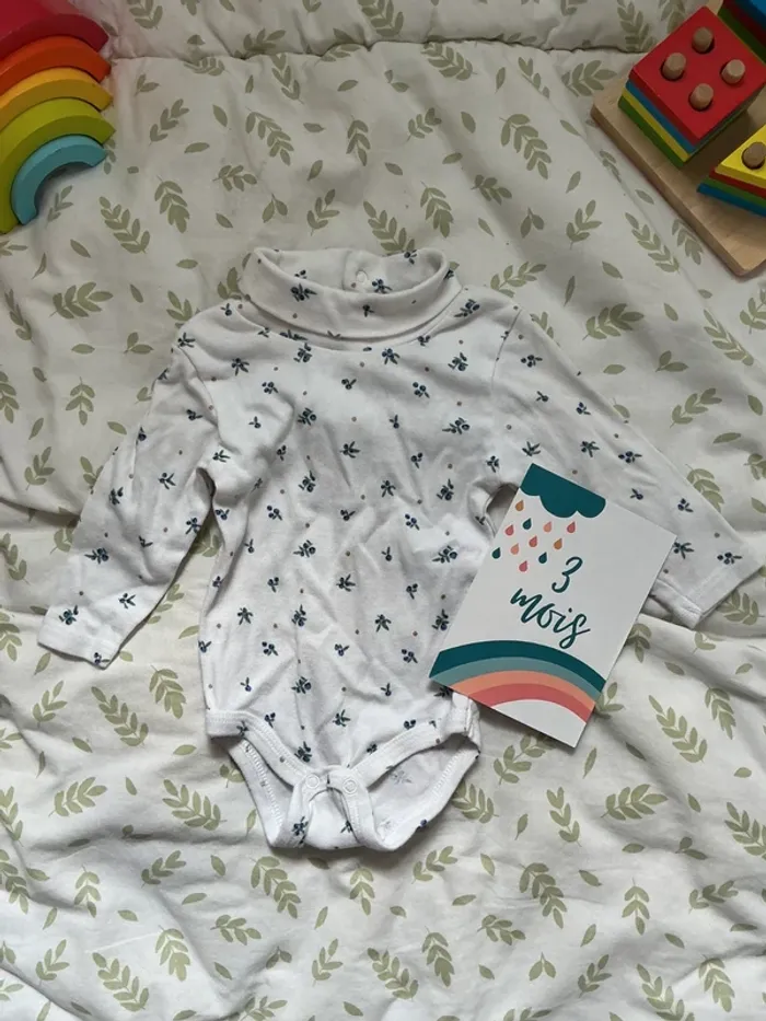 body sous pull col roulé blanc à motifs 3 mois kiabi - photo numéro 7