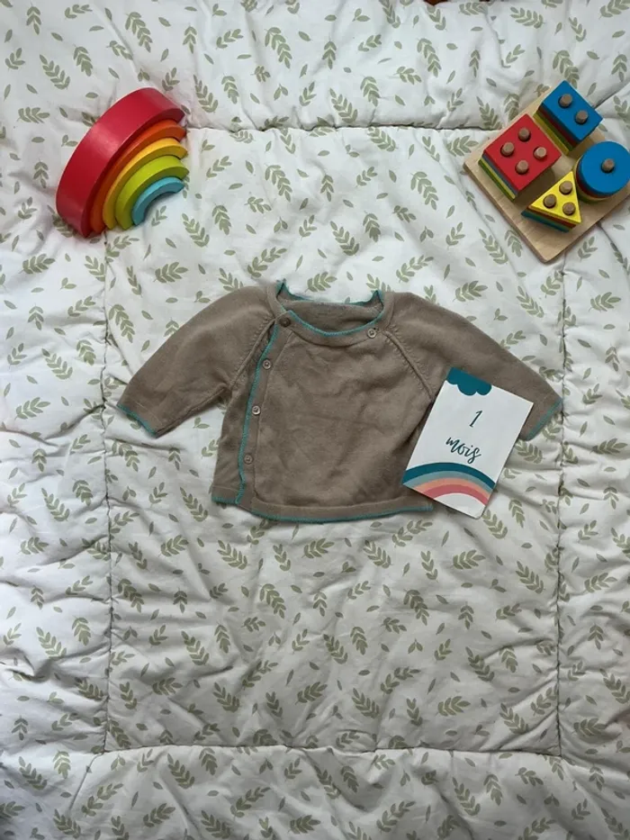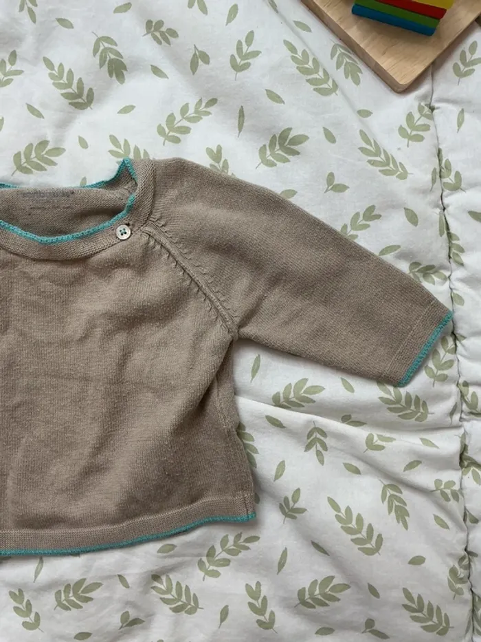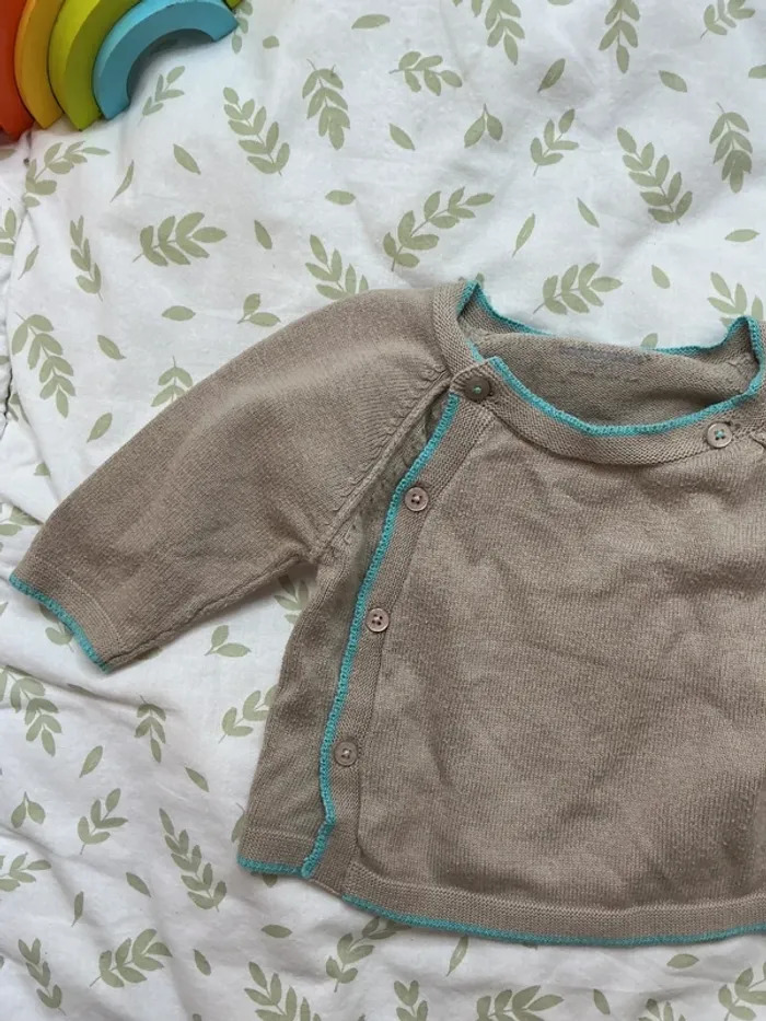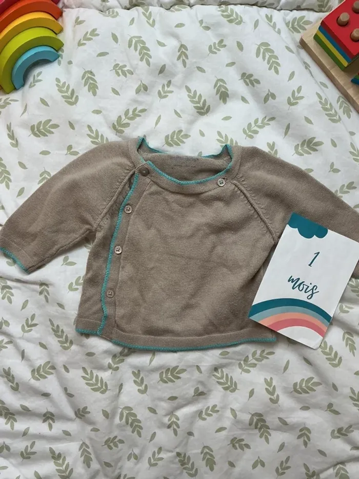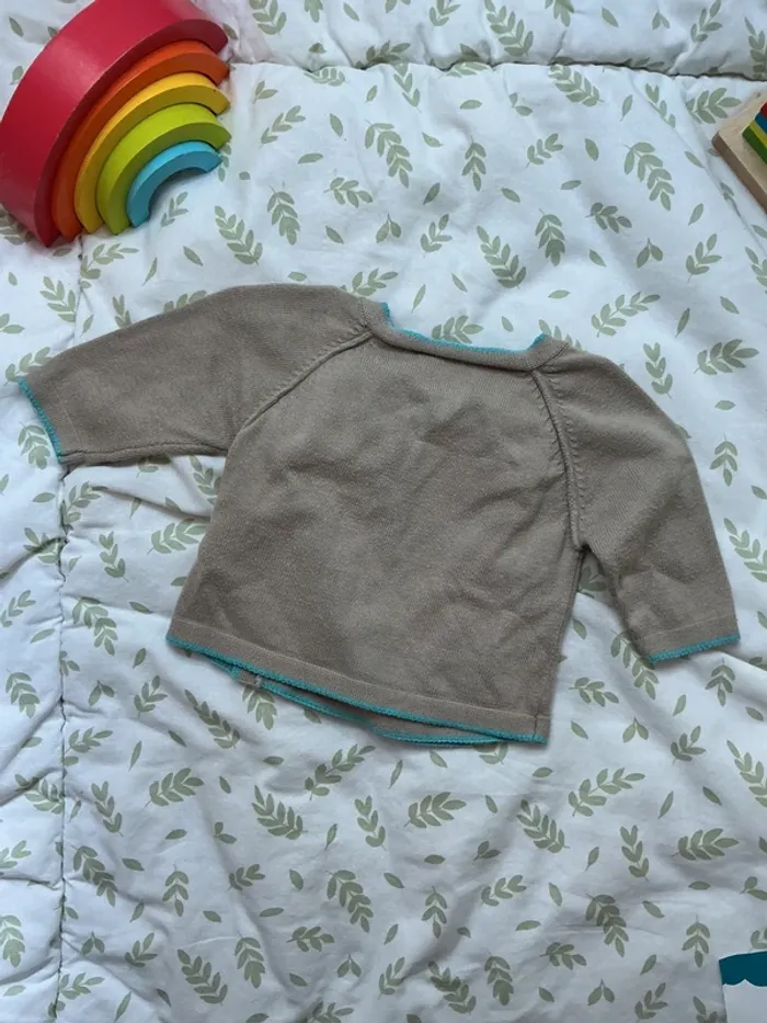 pull léger beige foncé ouverture devant 1 mois vertbaudet - photo numéro 6