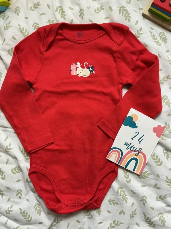 body manches longues rouge mots d'enfants 24 mois - photo numéro 6