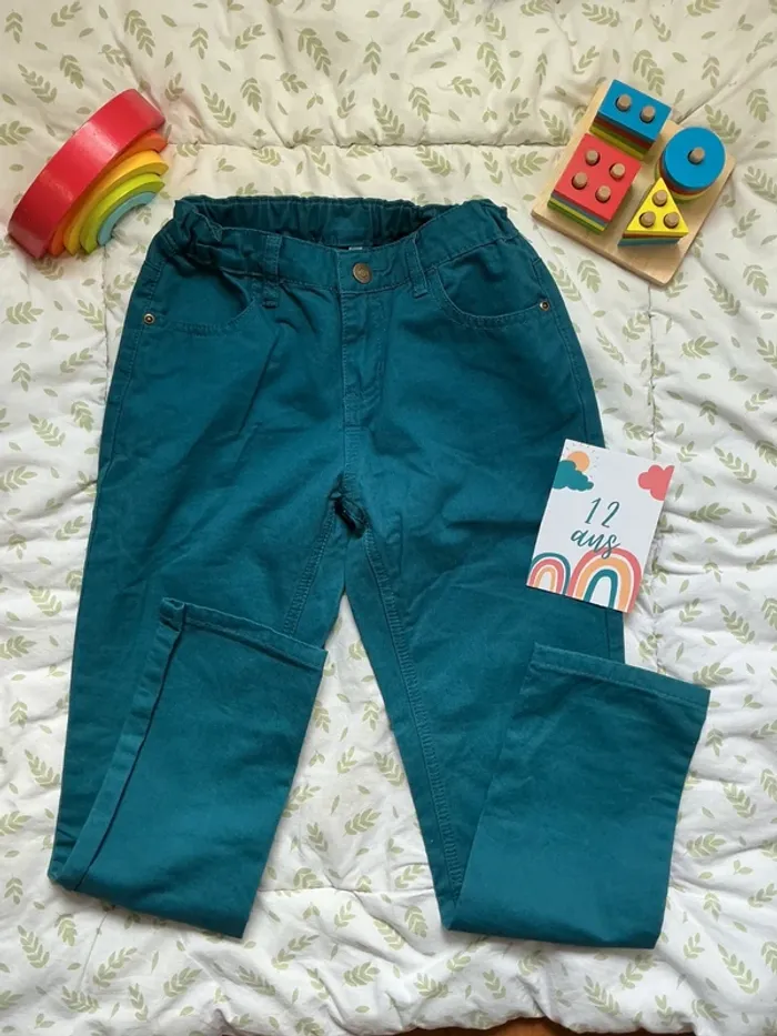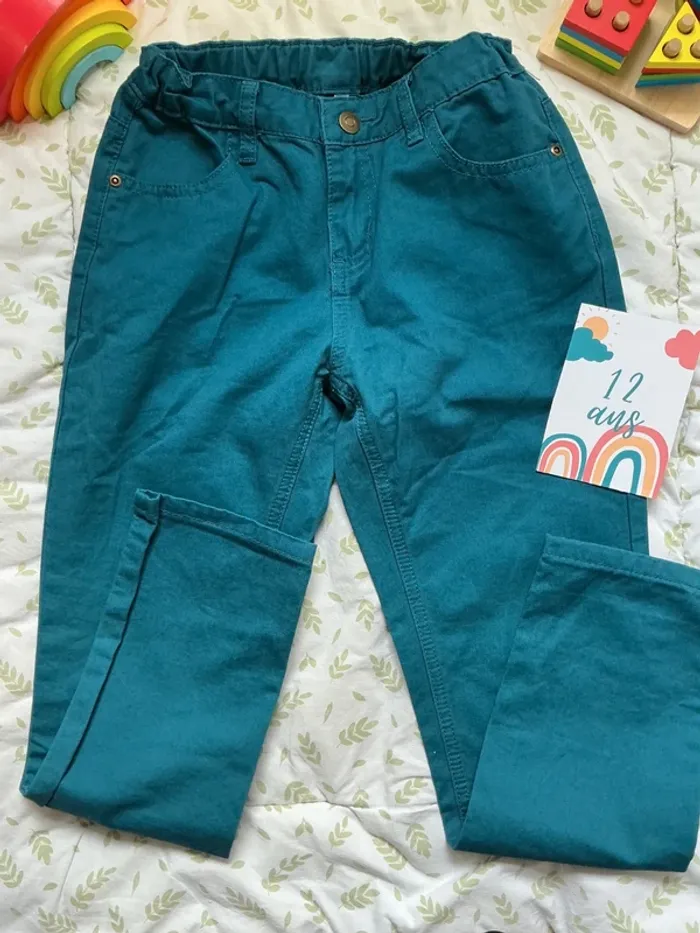 pantalon bleu vert taille réglable 12 ans coupe slim