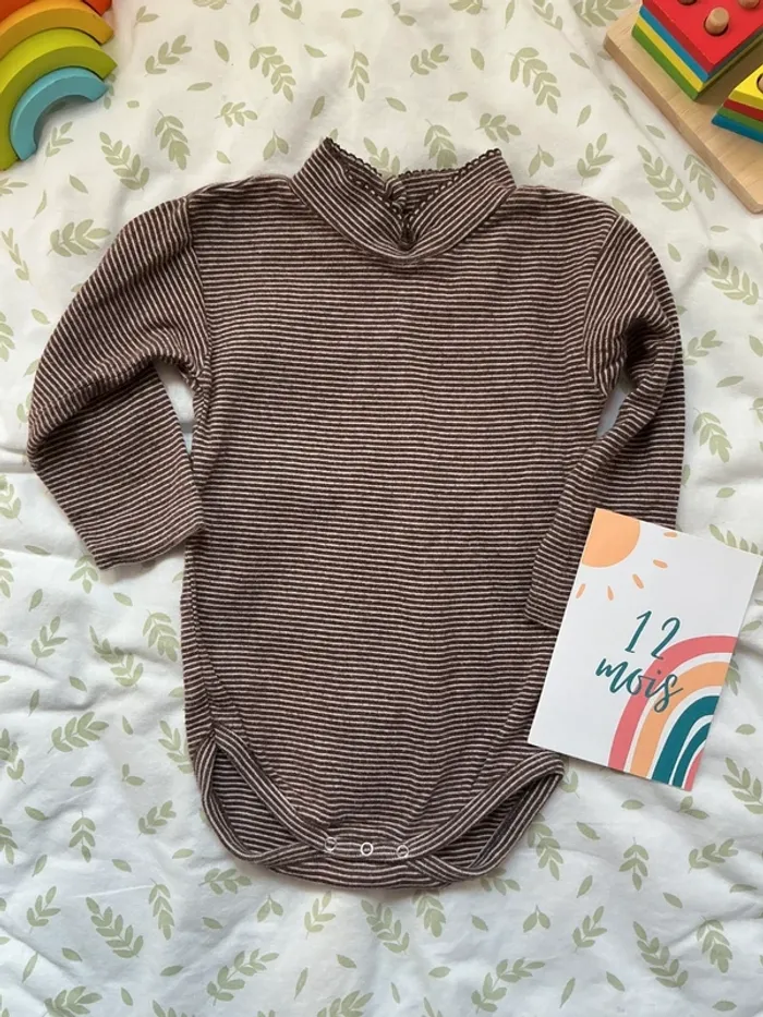 body manches longues col roulé marron rayé beige 12 mois - photo numéro 1