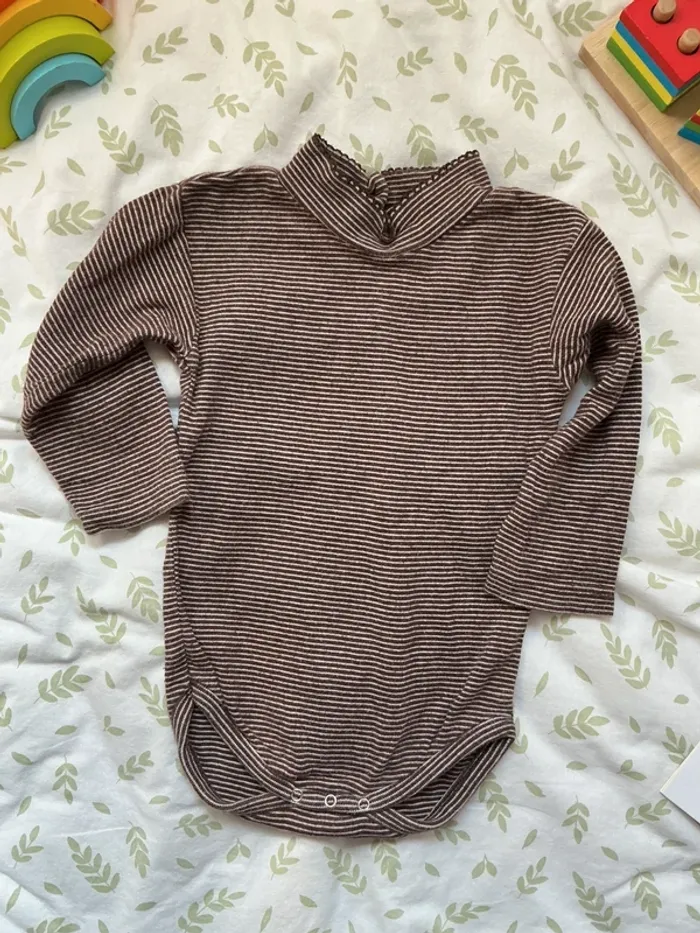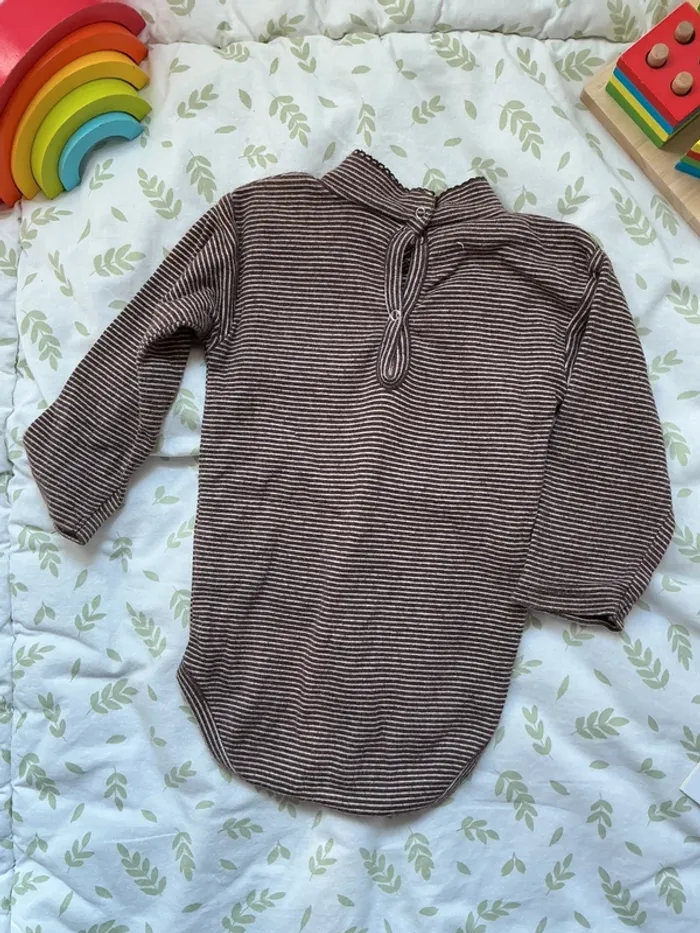 body manches longues col roulé marron rayé beige 12 mois - photo numéro 5