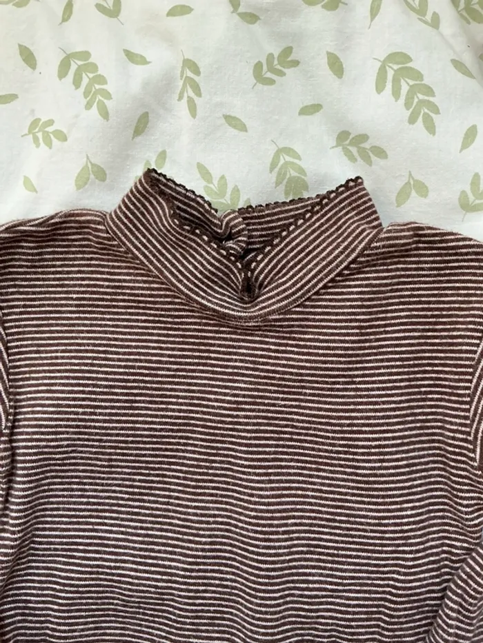 body manches longues col roulé marron rayé beige 12 mois - photo numéro 6