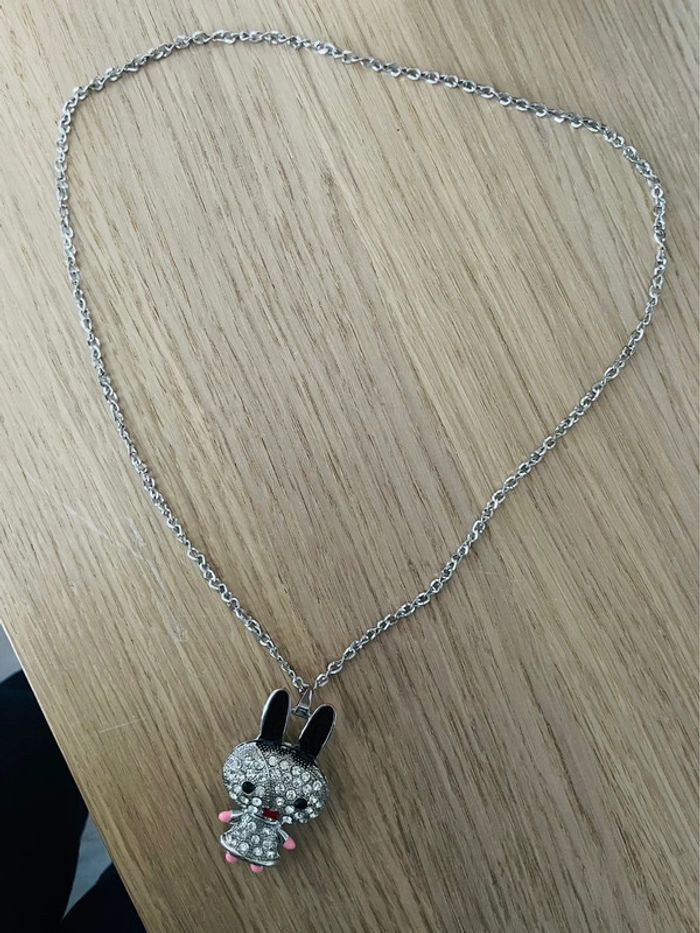 Collier avec pendentif lapin En acier inoxydable En très bon état (il manque juste un petit « diamant » à un endroit, voir photo 4) #bijouxvanillia92