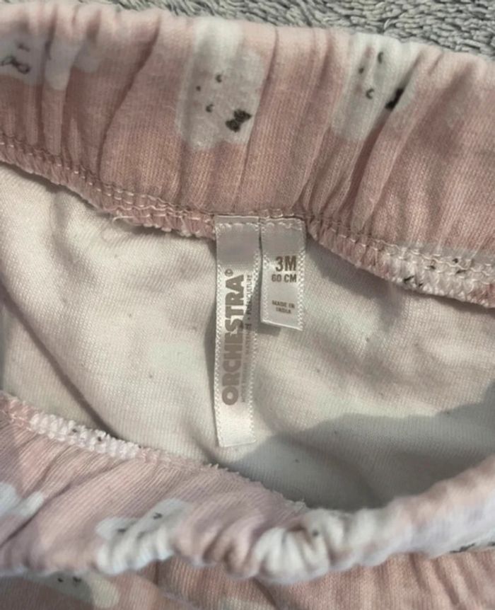 Ensemble fille avec un pantalon style sarouel rose avec motifs nuages et un tee shirt manches longues avec ouverture complète dans le dos Taille 3 mois ORCHESTRA En très bon état #fille3moisvanillia92