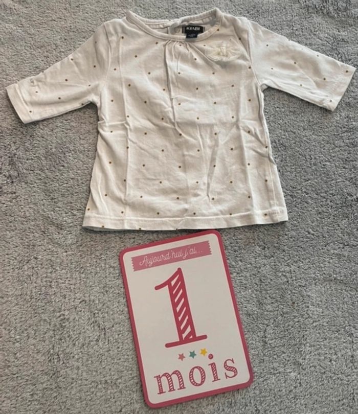 Tee shirt manches longues fille, 1 mois - photo numéro 1
