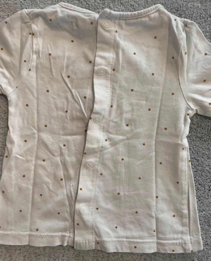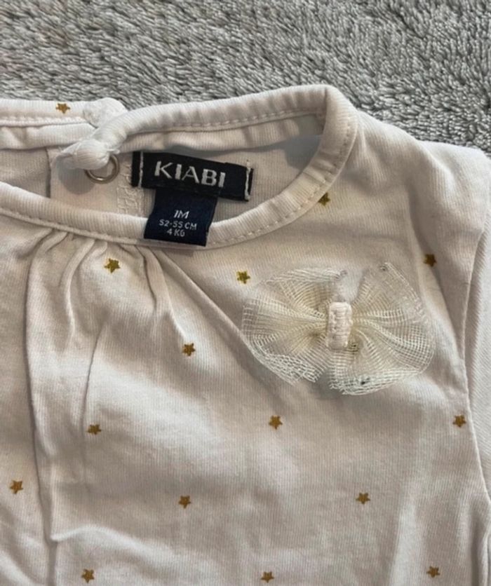 Tee shirt manches longues Blanc avec petits pois dorés Ouverture en entier par pression dans le dos Taille 1 mois KIABI En très bon état #fille1moisvanillia92
