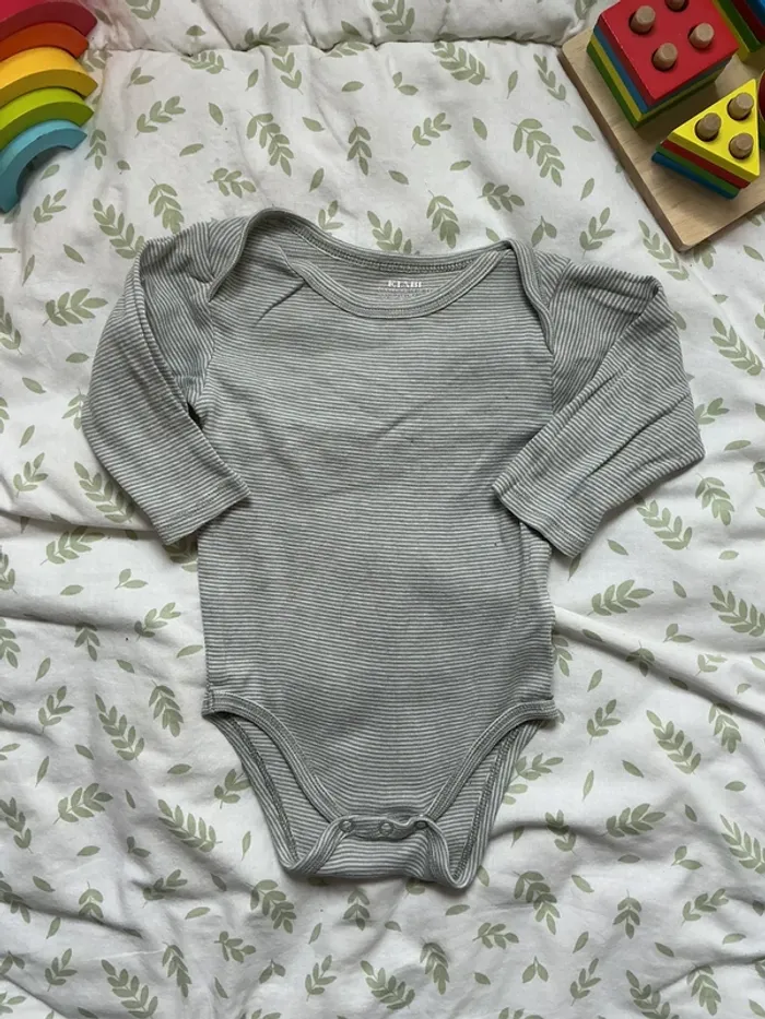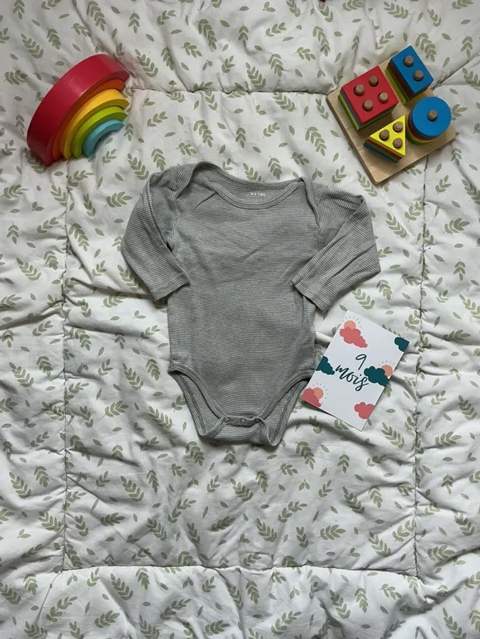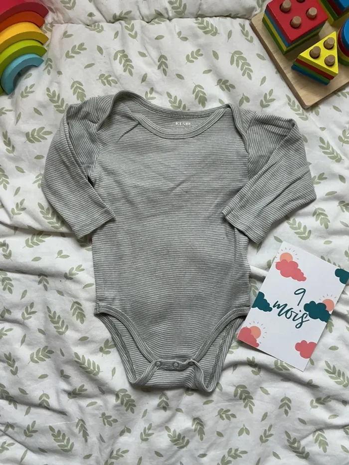 body manches longues rayé gris et blanc kiabi 9 mois - photo numéro 1