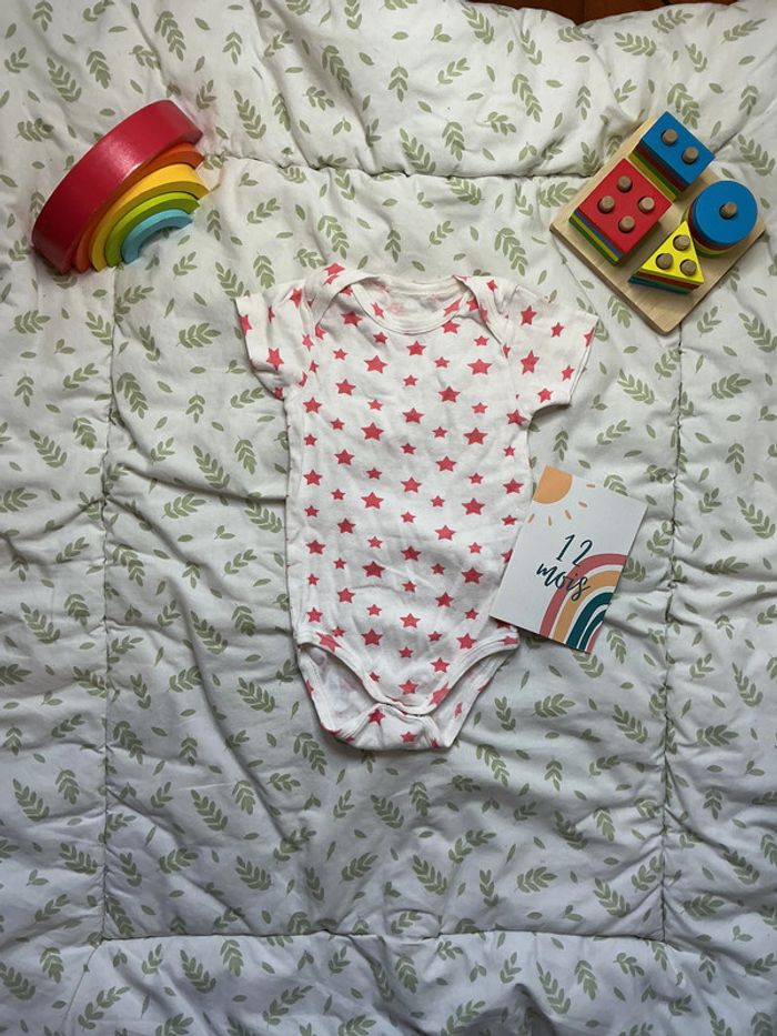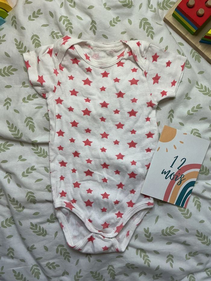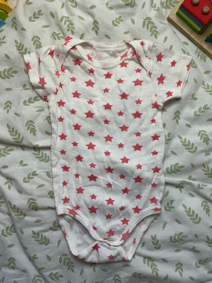 body manches courtes blanc motifs étoiles rose 12 mois - photo numéro 1