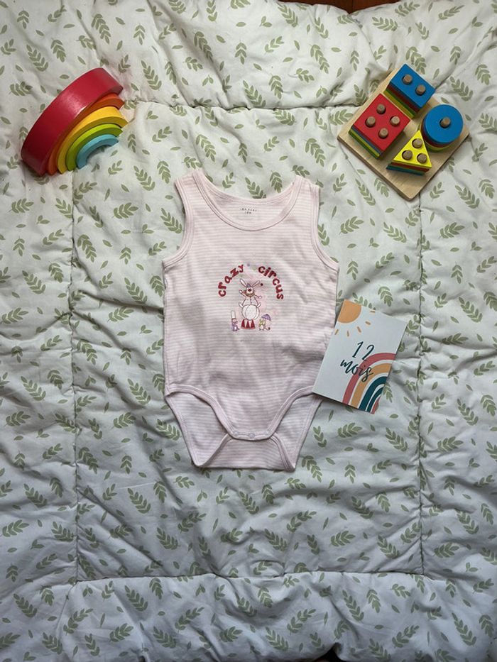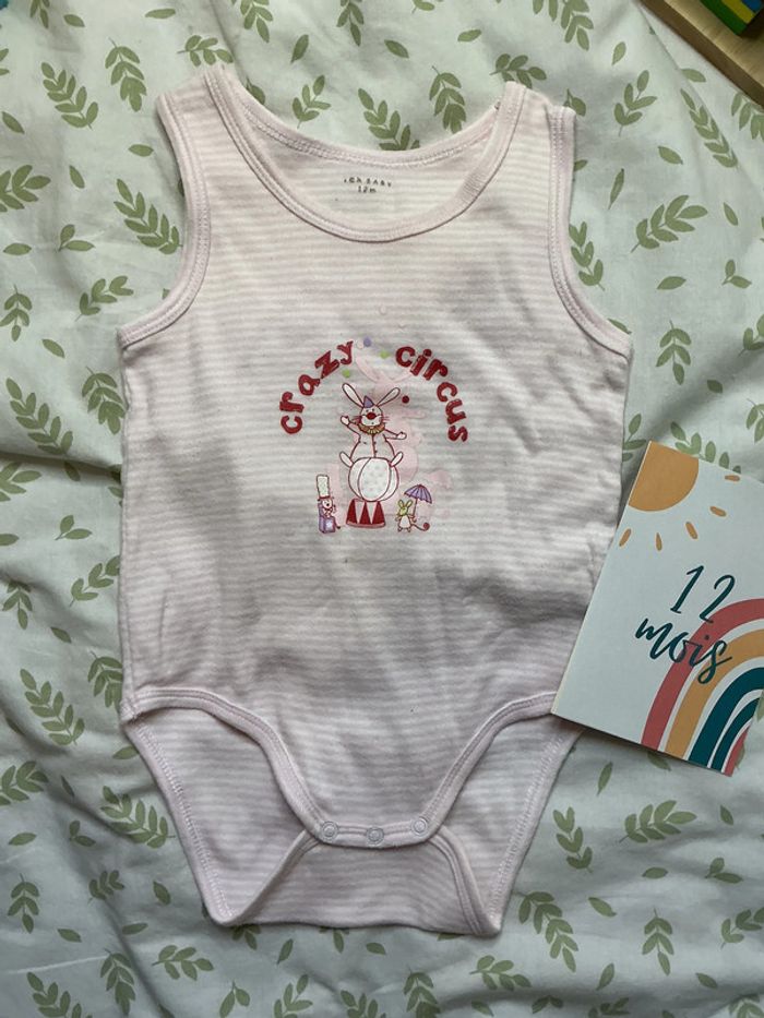 body débardeur rose et blanc 12 mois tex - photo numéro 1