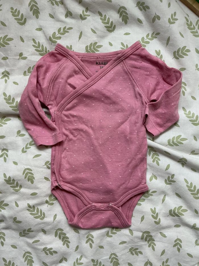 body manches longues rose à motifs coeurs 1 mois kiabi ouverture devant - photo numéro 1
