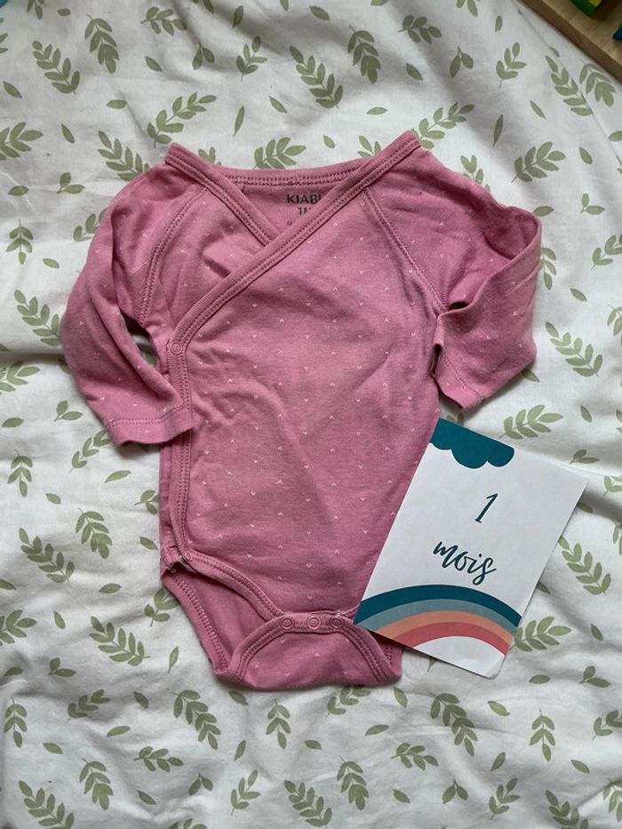body manches longues rose à motifs coeurs 1 mois kiabi ouverture devant - photo numéro 5