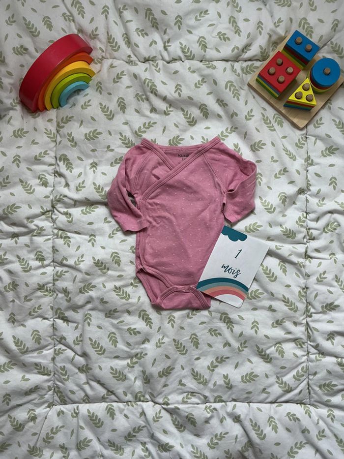 body manches longues rose à motifs coeurs 1 mois kiabi ouverture devant - photo numéro 4
