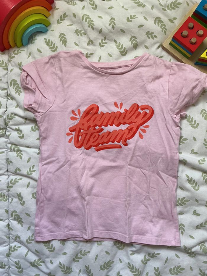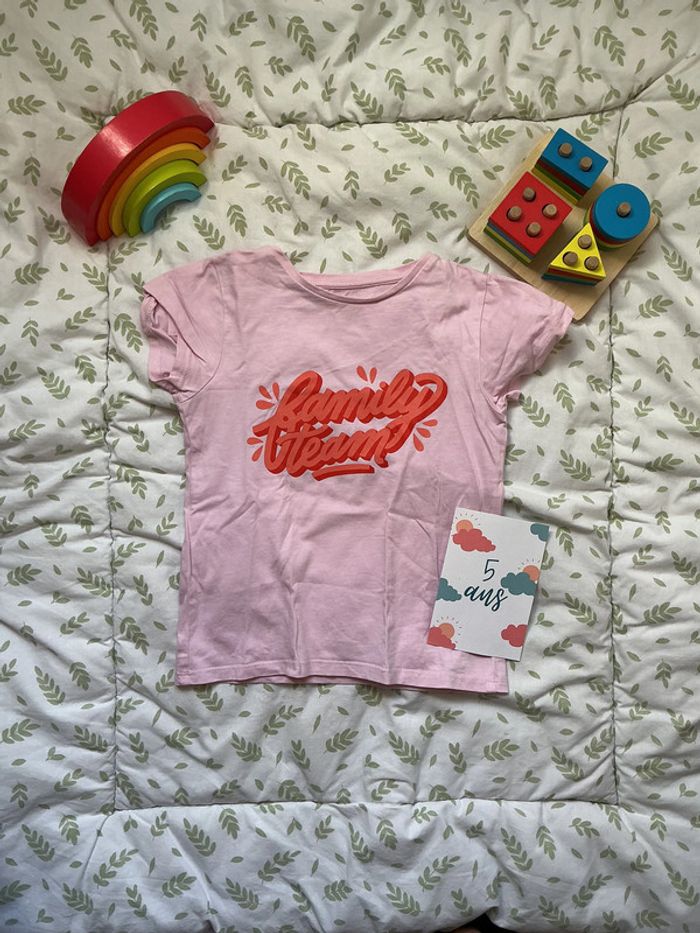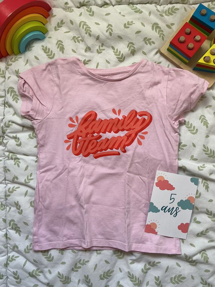 teeshirt manches courtes rose inscription devant 5 ans vertbaudet