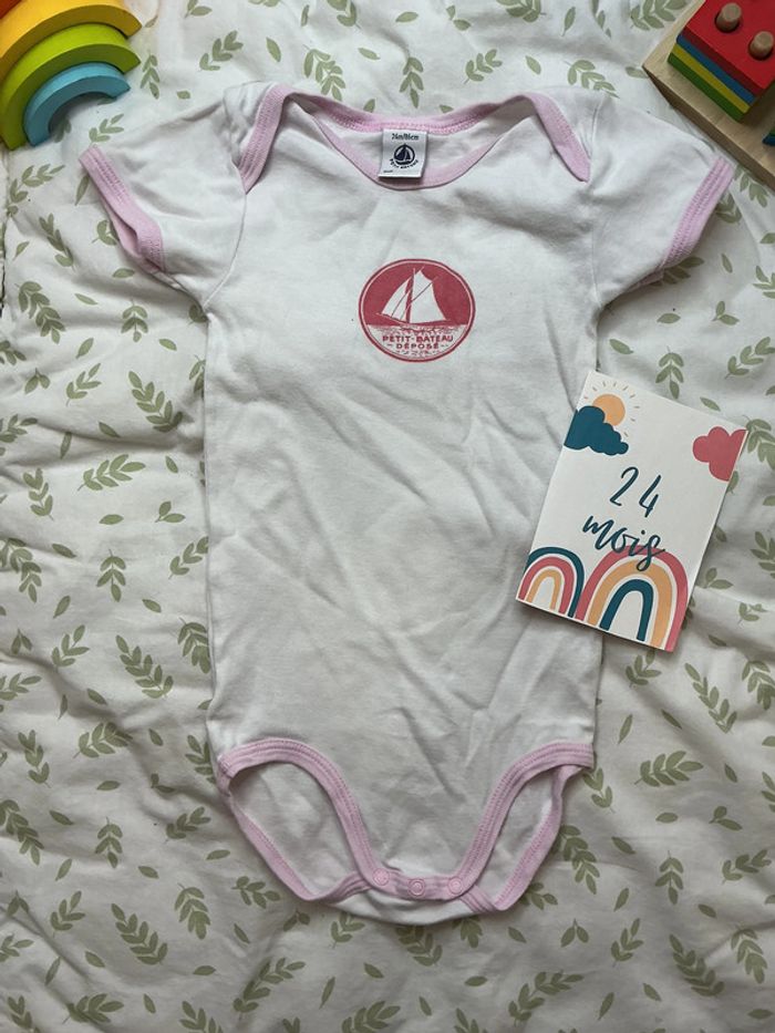 body manches courtes blanc dessin bateau devant 24 mois petit bateau