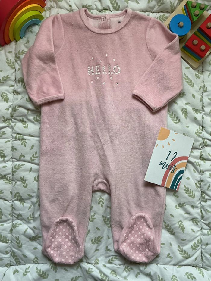 pyjama grenouillère en velours rose 12 mois vertbaudet - photo numéro 1