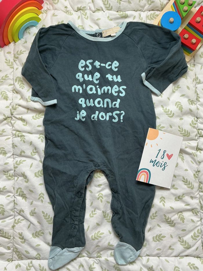 pyjama grenouillère en coton bleu/gris 18 mois les petits coquins