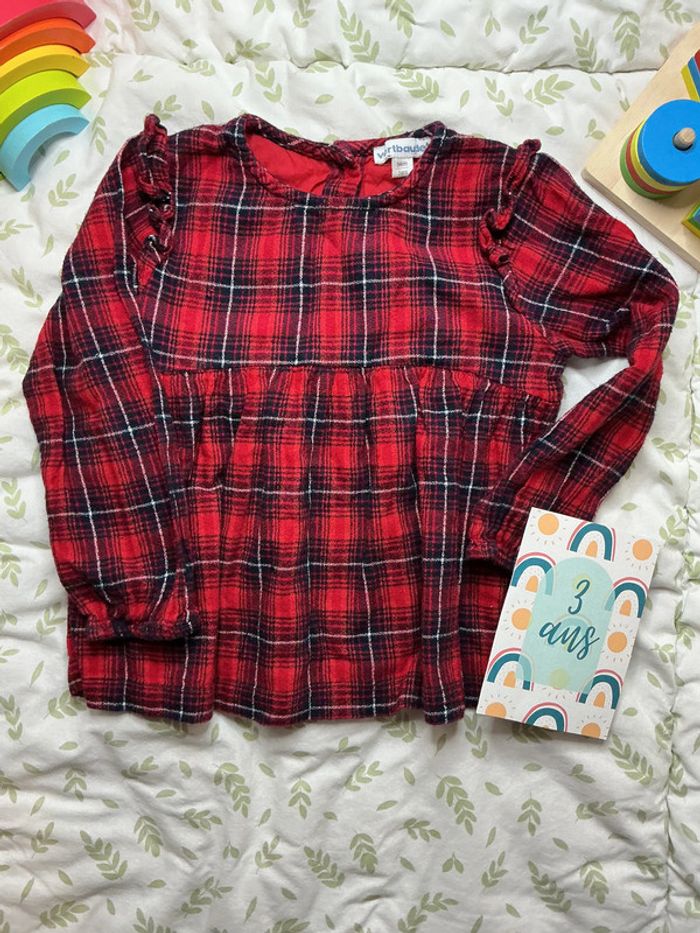 blouse manches longues rouge et marine vertbaudet 3 ans - photo numéro 1