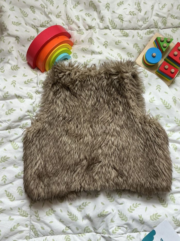 gilet sans manches en fourrures beige et marron H&M 9/10 ans - photo numéro 2