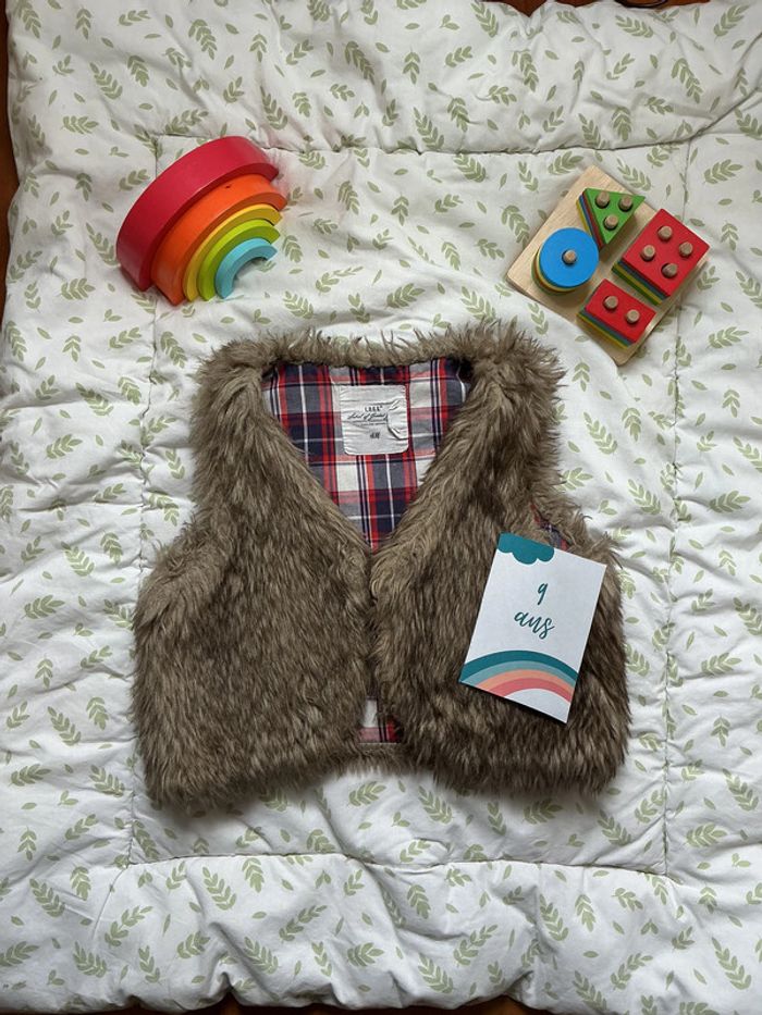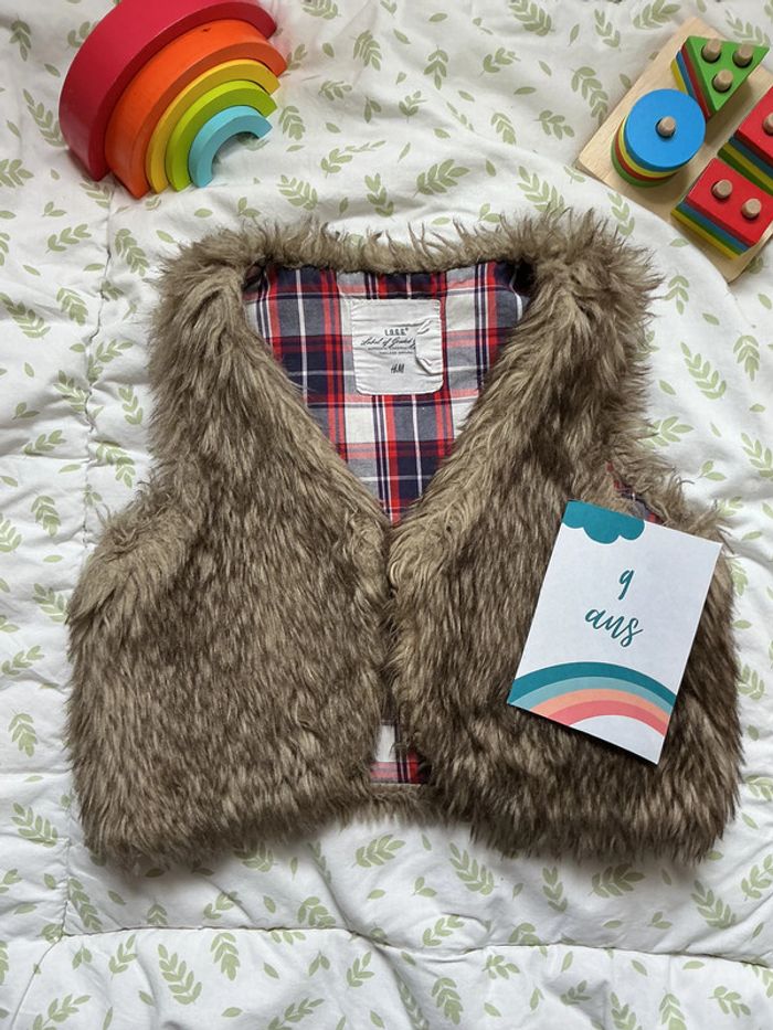 gilet sans manches en fourrures beige et marron H&M 9/10 ans