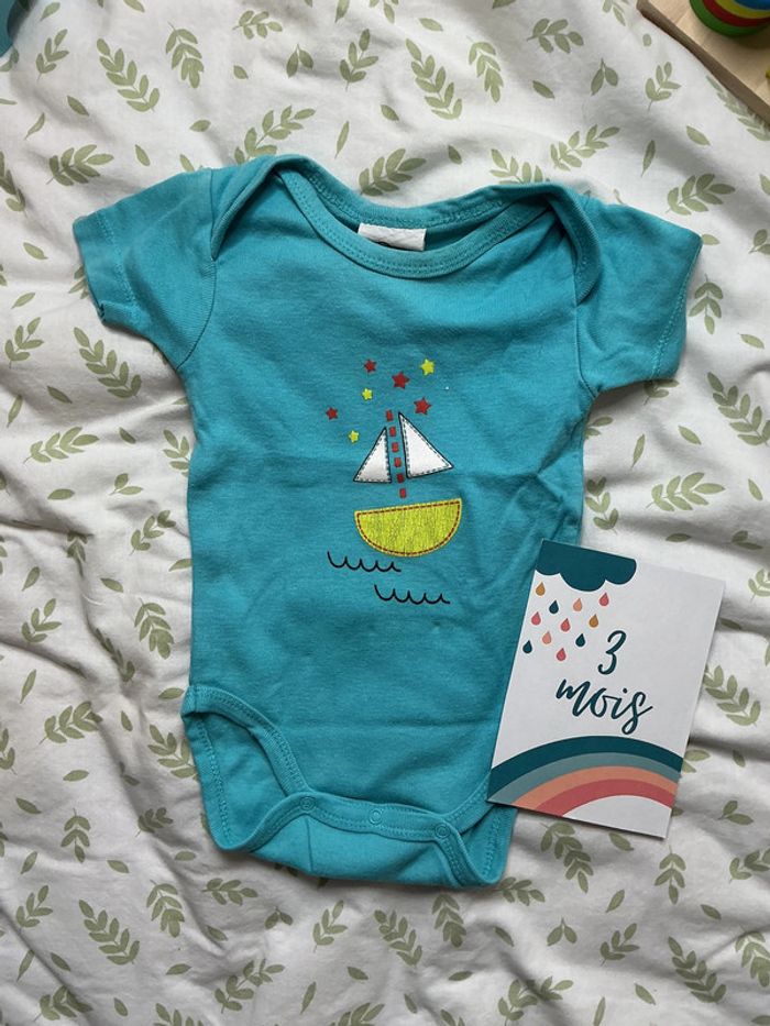 body manches courtes bleu mots d'enfants 3 mois - photo numéro 2