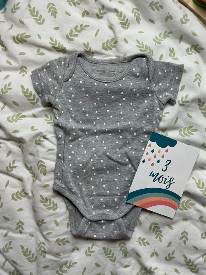 body manches courtes gris motifs étoiles gémo 3 mois - photo numéro 1