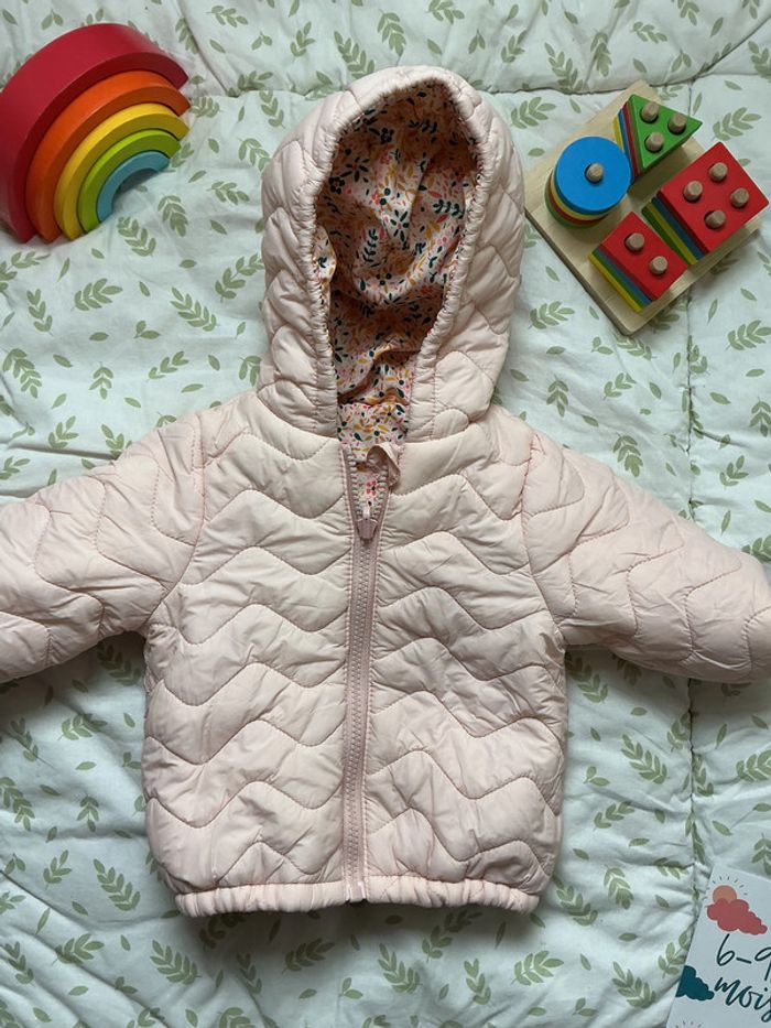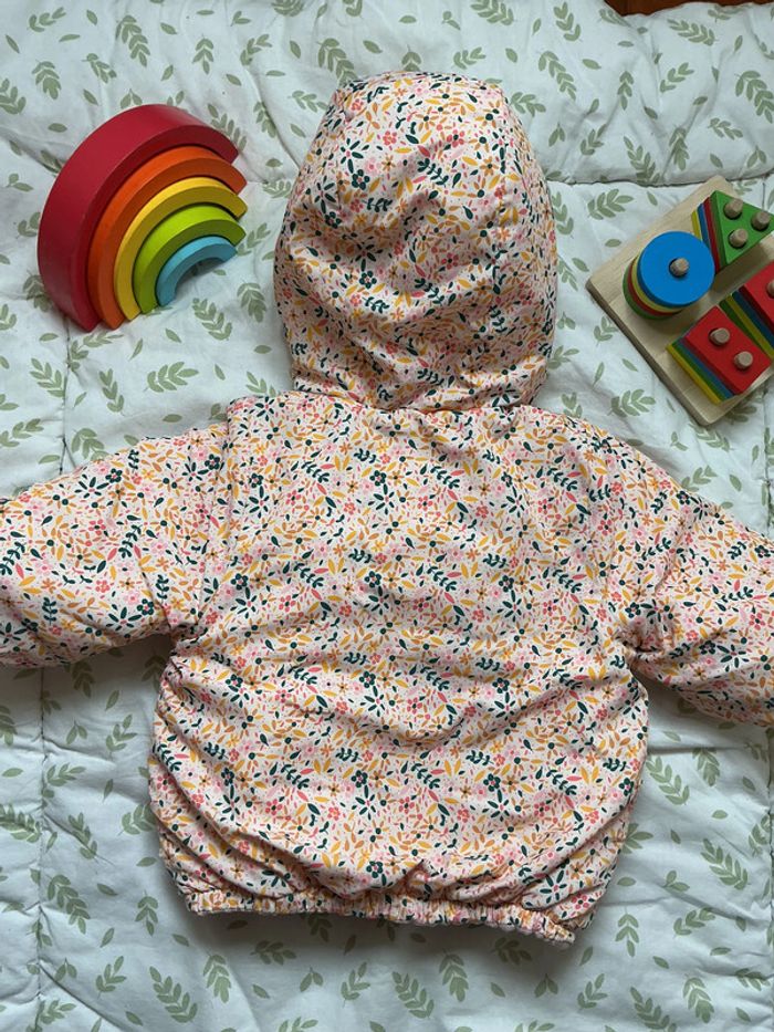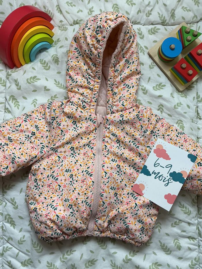 doudoune à capuche réversible 1 coté rose et 1 coté fleuri vertbaudet 6/9 mois