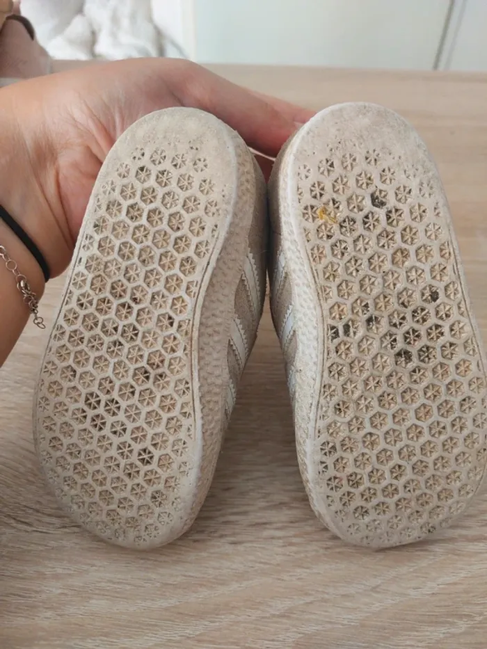 Taille 21. État satisfait (voir photos). Un bon coup de nettoyage est à prévoir. A la base elles sont de couleur rose très pales. Elles sont plutôt grises maintenant.