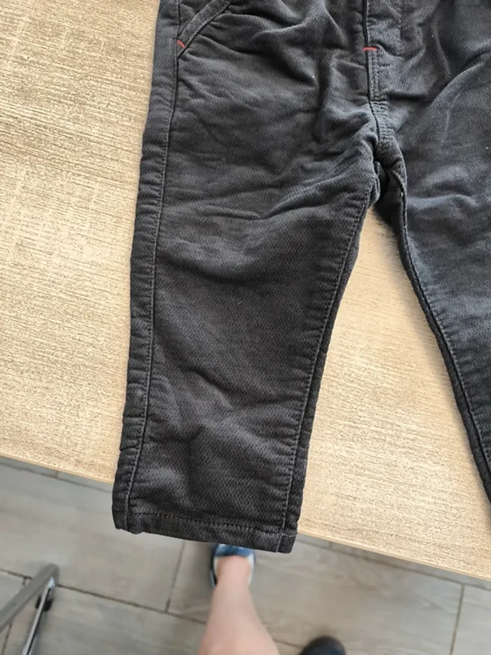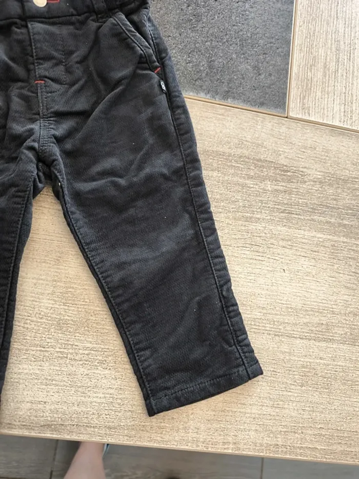 * De son pantalon effet velours réglable à la taille