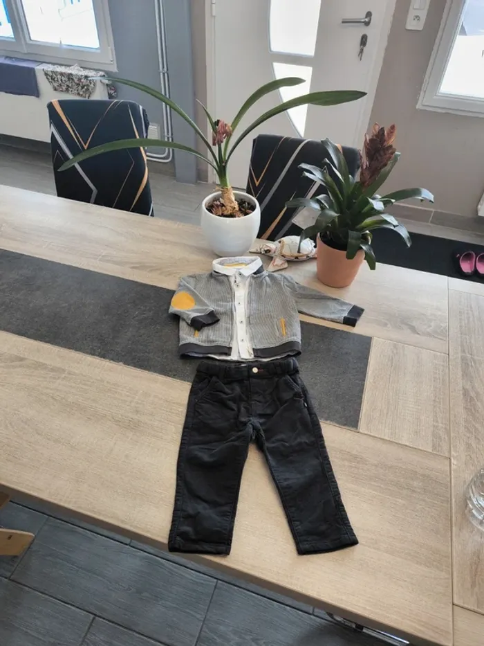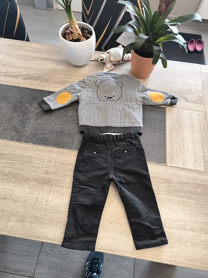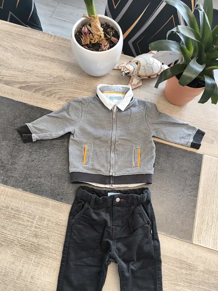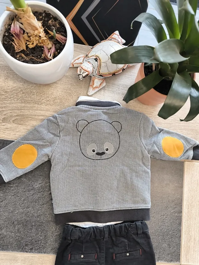 Magnifique ensemble 3 pièces garçon taille 12 mois de la marque obaibi en parfait état composé