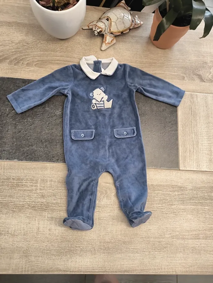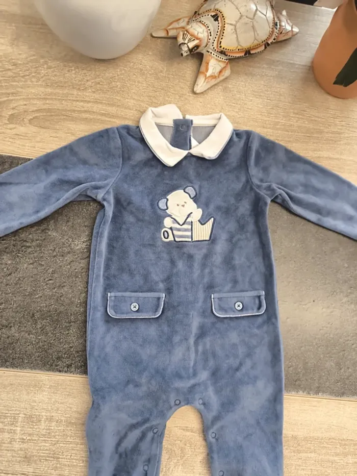 Magnifique pyjama à col hiver garçon taille 6 mois 70cm de la marque Mayoral en parfait état avec motif brodé impeccable et pieds doublés ok. Ouverture totale au dos par pressions et à l'entrejambe. Top qualité et couleurs 🤩☺️ topissime et confortable 👌🤩 rarement porté