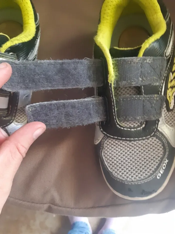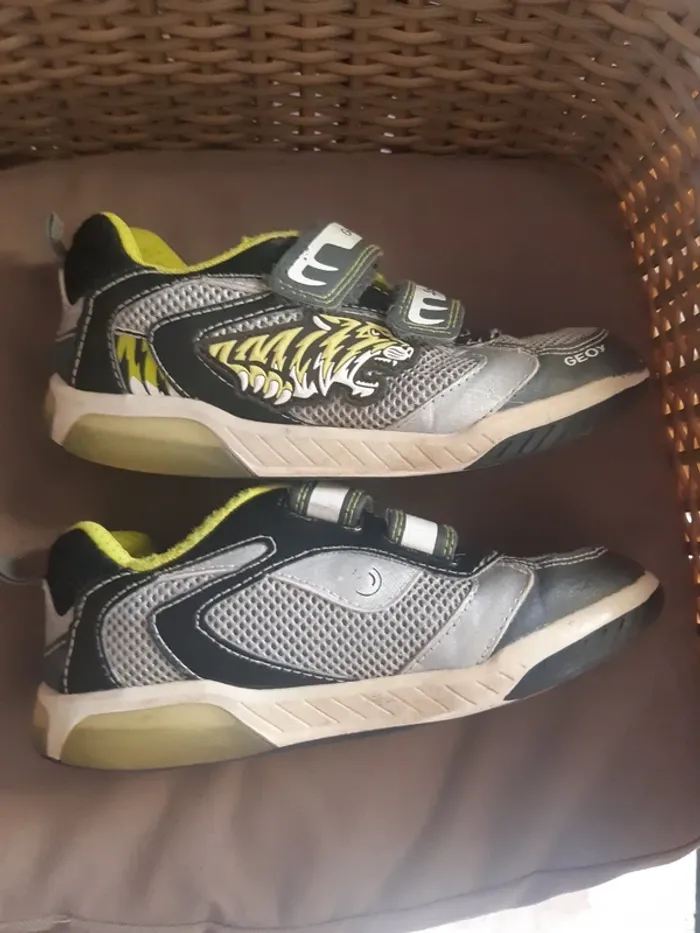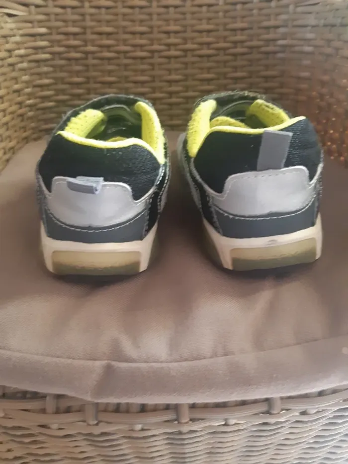 Le bout des chaussures est un peu usé Il y a un scratch de recousu Elles sont censées s'allumer au niveau du talon mais ça ne fonctionne plus