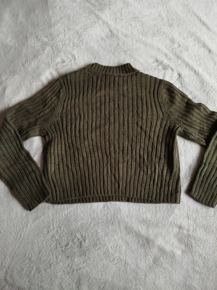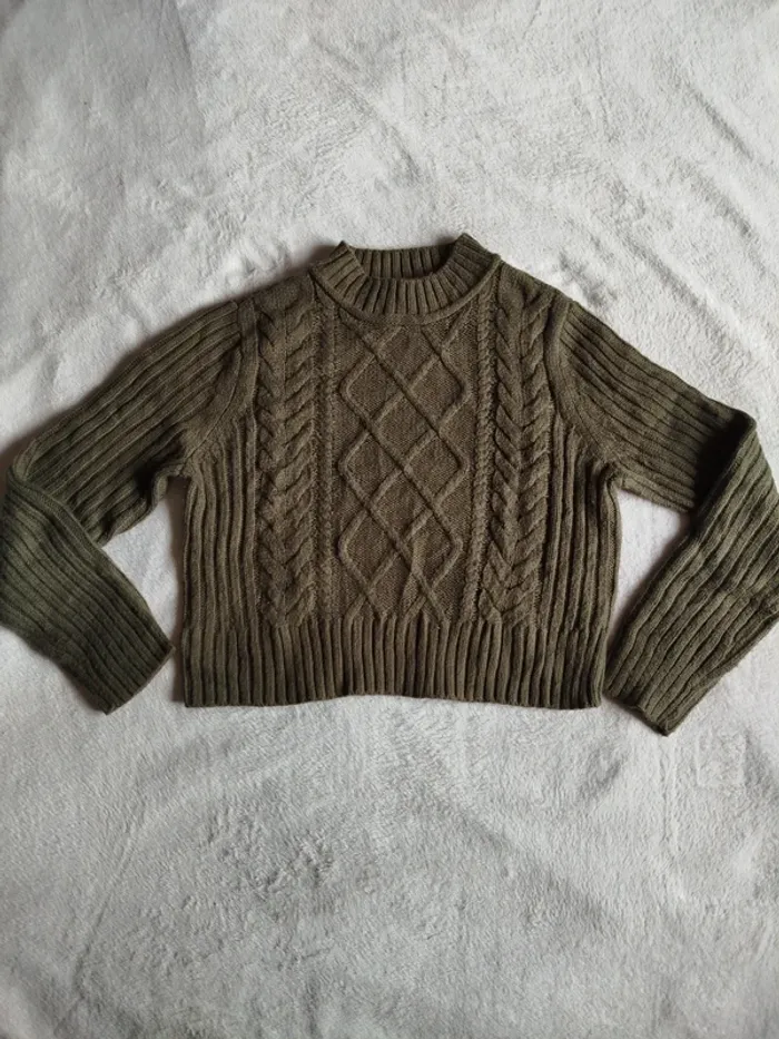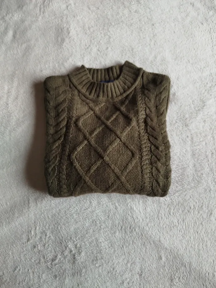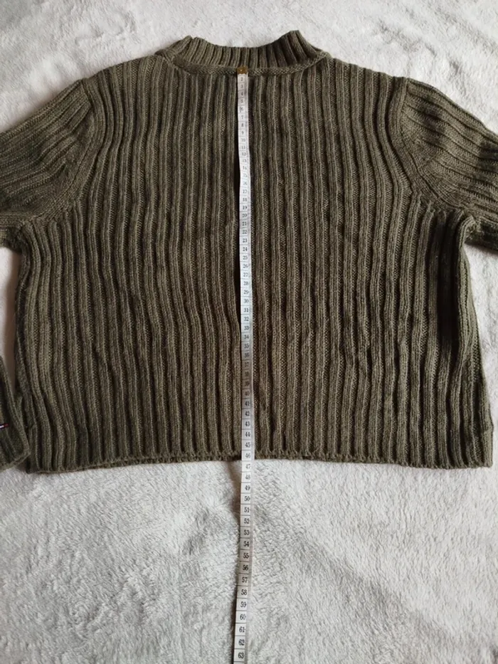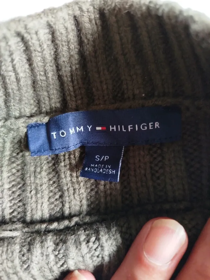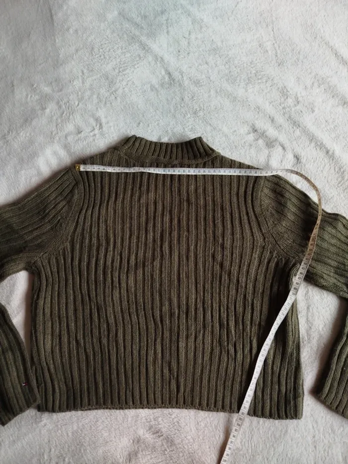 👕 Pull vintage femme Tommy Hilfiger 📏 Taille S 🎨 Kaki 👍 Pull court, col montant Torsades Pull ancien sans trou ni tâche, quelques bouloches