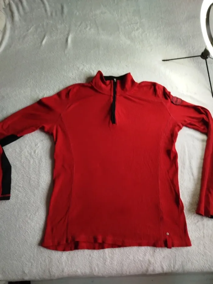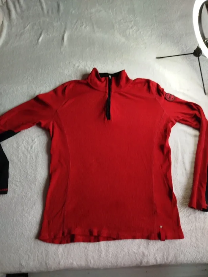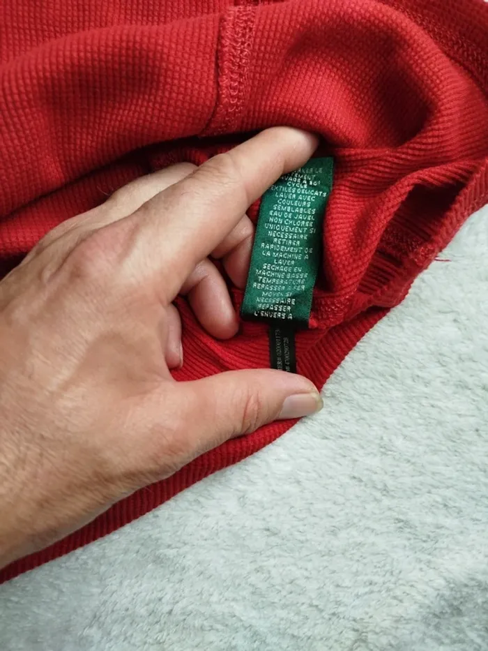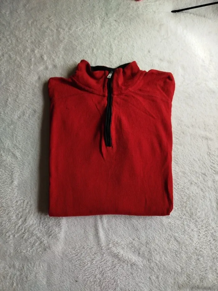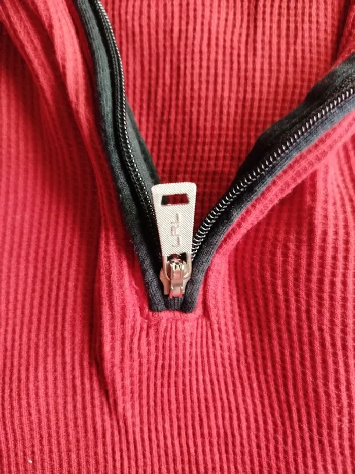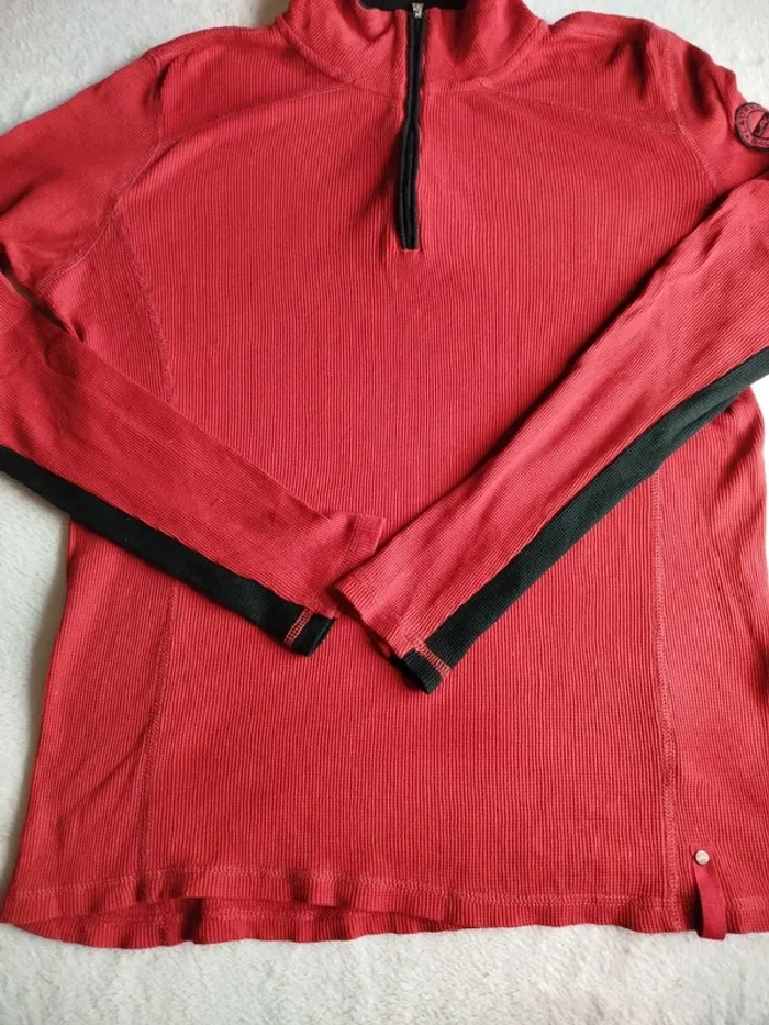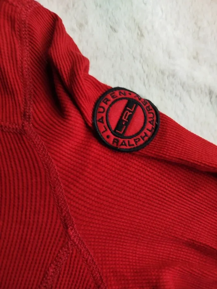 👕 Pull vintage femme Lauren Ralph Lauren Col montant zippé 📏 Taille L 🎨 Rouge et noir 👍 Pull ancien sans trou ni tâche