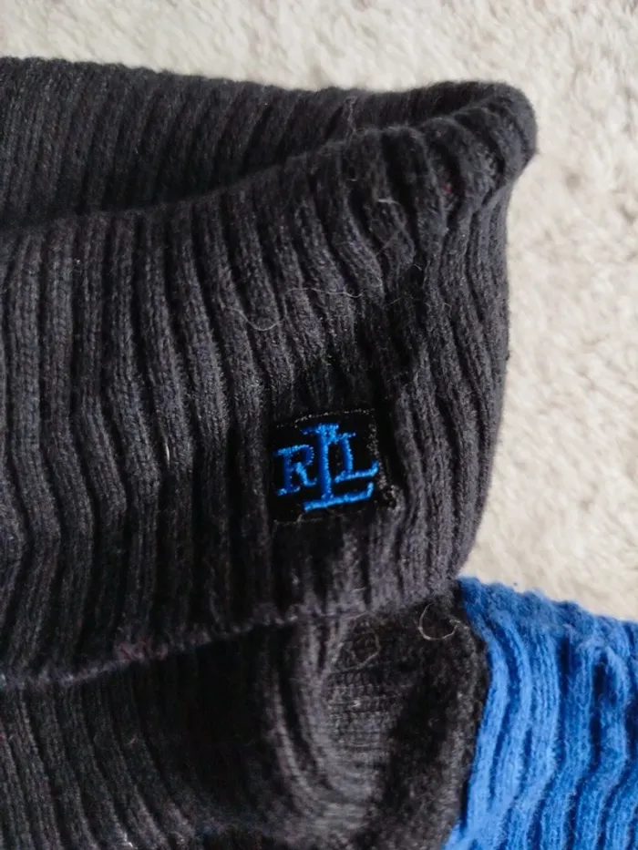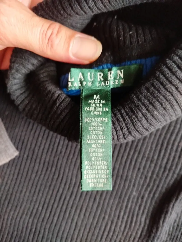 👕 Pull vintage femme Lauren Ralph Lauren 📏 Taille M (dimensions en photos) 🎨 Noir, bleu, gris 👍 Pull vintage ancien en bon état général, poignet manche droite un peu abîmé, quelques bouloches