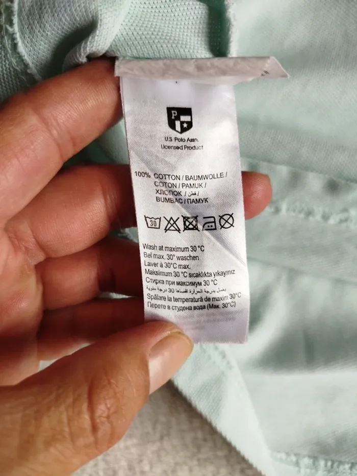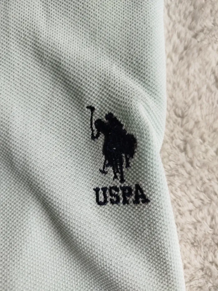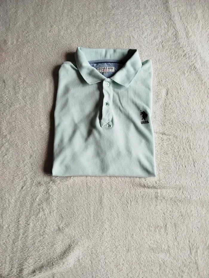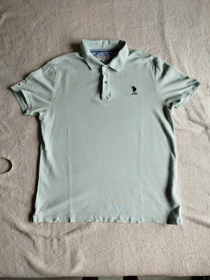 👕 polo vintage homme Us Polo Assn 📏 Taille L 🎨 Vert d'eau très clair 👍 Pas de trou mais quelques tâches, voir photos, décoloration au niveau des aisselles