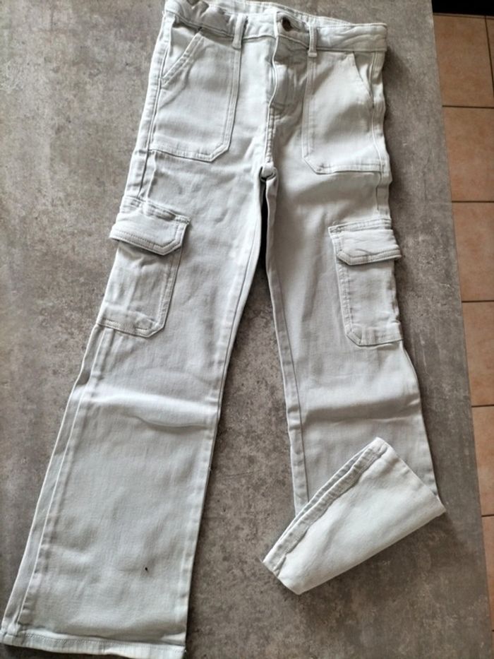 Jean cargo vert/gris très clair en coton et elasthane Un élastique réglable à la taille. Le bas des jambes est large. Un look intemporel pour une girly. #fanfanfille10@fanfan35320 #vintedmngcasual