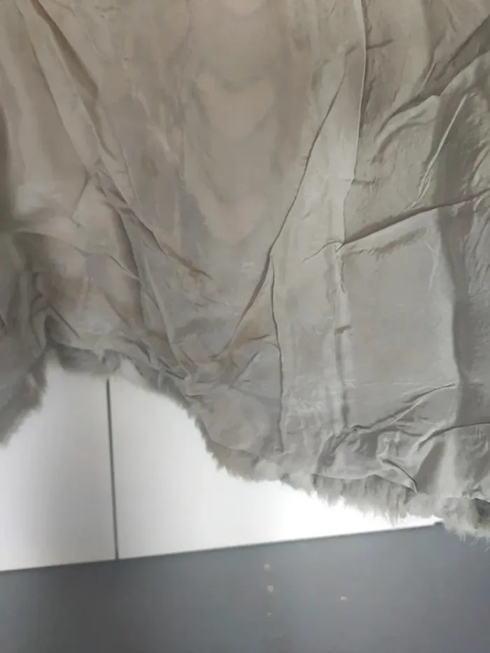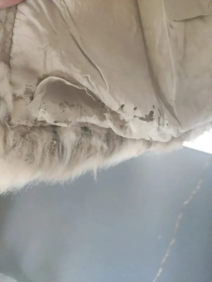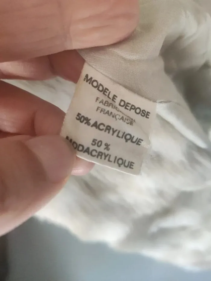 Joli manteau mais attention gros nettoyage à faire et bas d'une doublure très très abîmée, 2 poches sur le côté. Il y a un lien pour un bouton qu'il n'y a plus. 50 % acrylique et 50 % modeacrylique. Taille unique