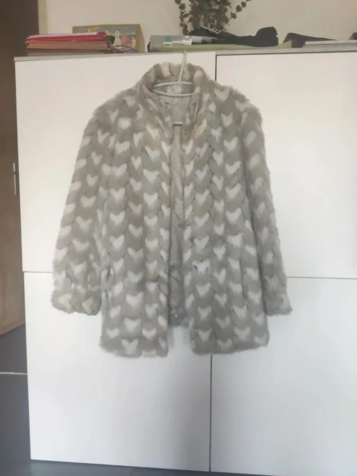 Manteau fausse fourrure gris blanc - photo numéro 1