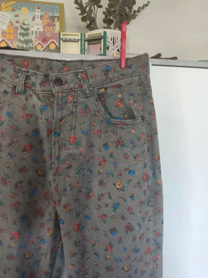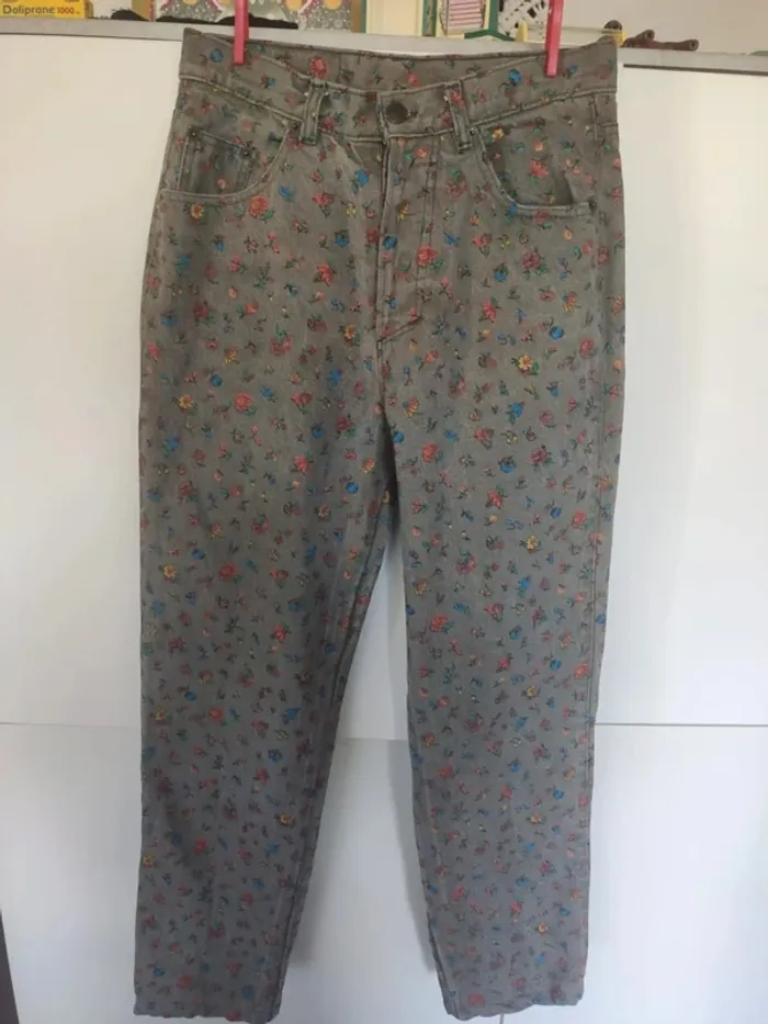 Jean gris fleuri 38 40 - photo numéro 2