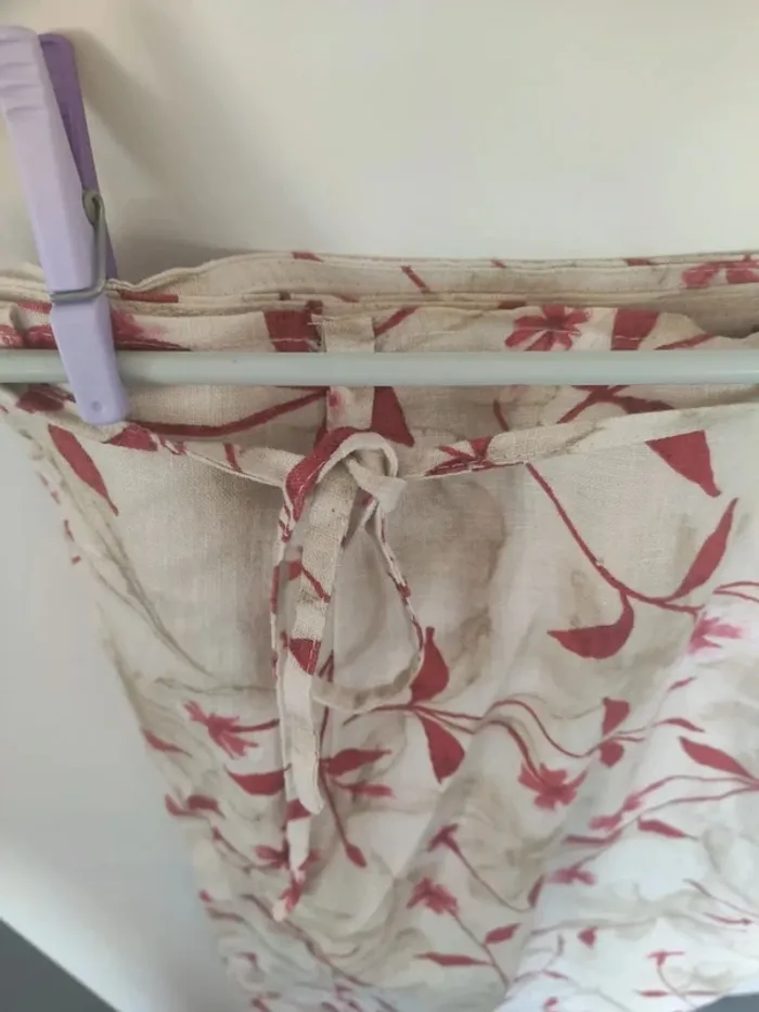 Ensemble vintage composé d'une jupe portefeuille avec lien de serrage à la taille et possibilité d'ajouter une ceinture car il y a des passants. Avec un top boléro qui se ferme sur le côté. 100 % lin, couleur beige avec des fleurs rouge foncé. Très bon état, marque Georgia Kayne, taille 38. Longueur de la jupe 73 cm et du top 45 cm #vulariFemmesVintage #vulariFemmesM38