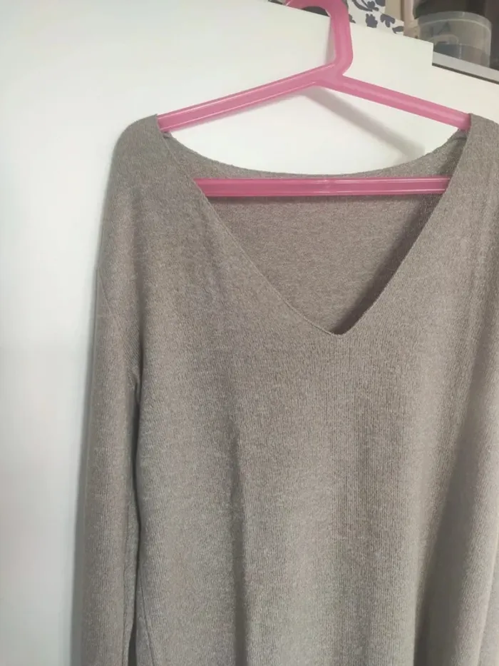 Pull basique à col V acheté à Zara, coloris beige, bon état, taille S. Très doux, j'ai coupé l'étiquette de la composition du pull... #vulariFemmesS36 #vulariZara