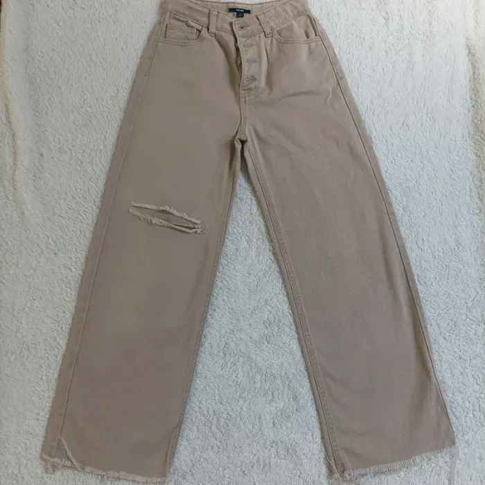 Jean wide leg Kiabi taille 32 beige en parfait état Photo de présentation sur modèle non contractuelle