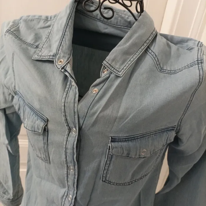 Blouse style jean Kiabi taille 34, boutons pressions en très bon état D'autres affaires dans mon dressing #valkyetcie_34femme #blousejean34 #blouse34femme #blouse34 #34femme #femme34 #chemisejean34