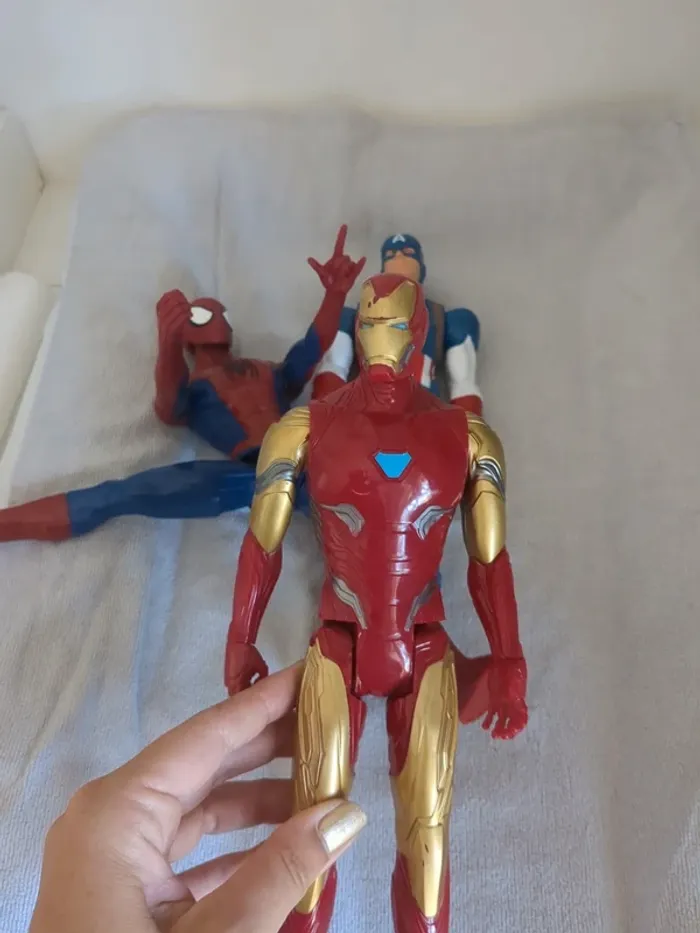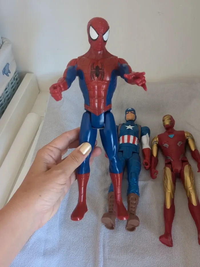 Personnages héros spiderman, Iron man et Captain America. Utilisées mais en très bon état
