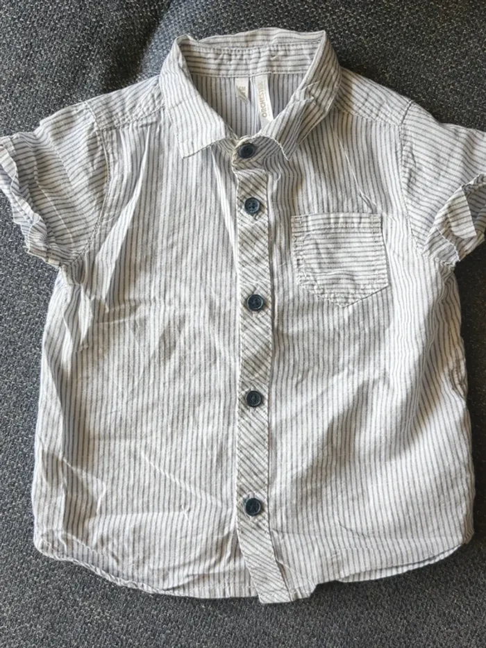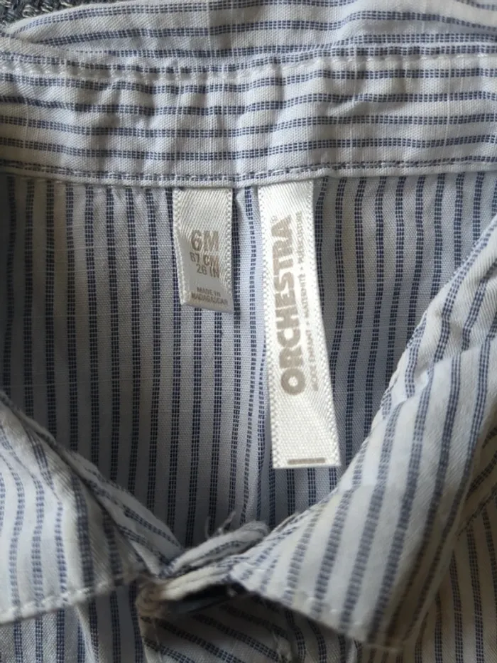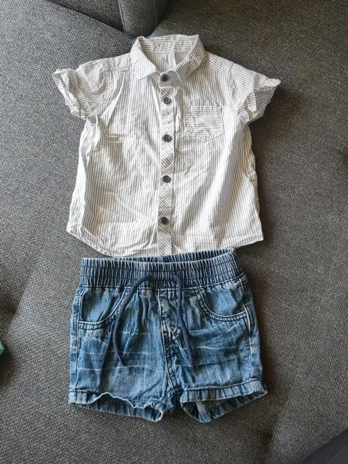 Lot composé d'une chemise manches courtes orchestra taille 6 mois et d'un short en jean taille 68cm. Porté pour un mariage mais peut s'utiliser au quotidien