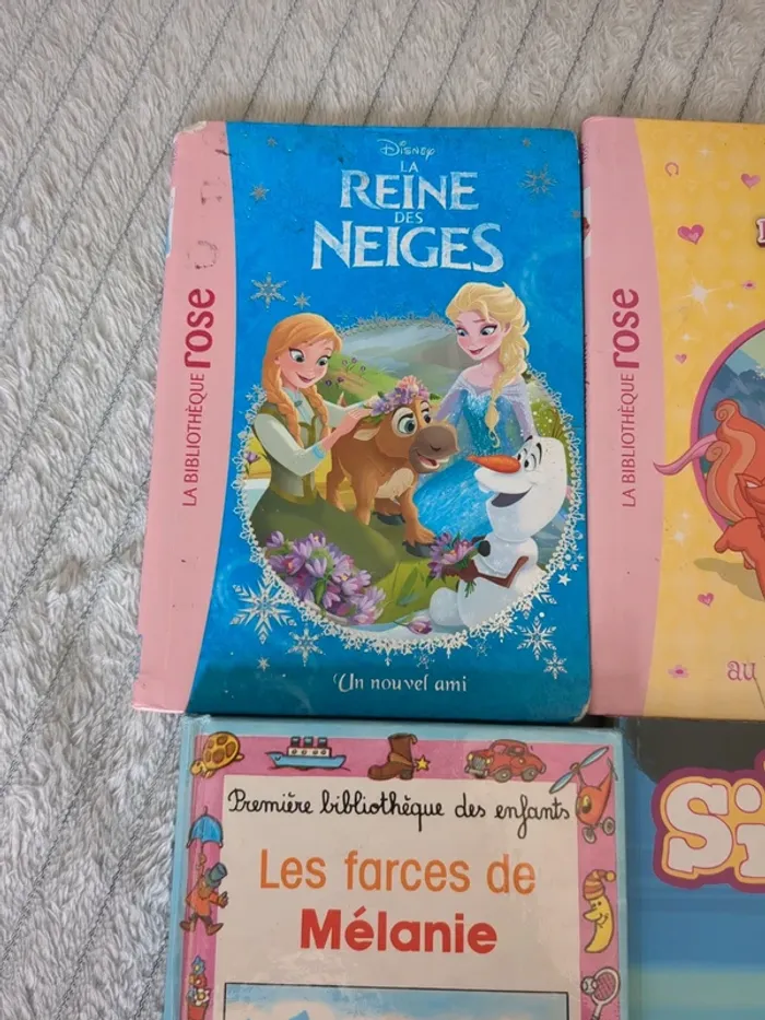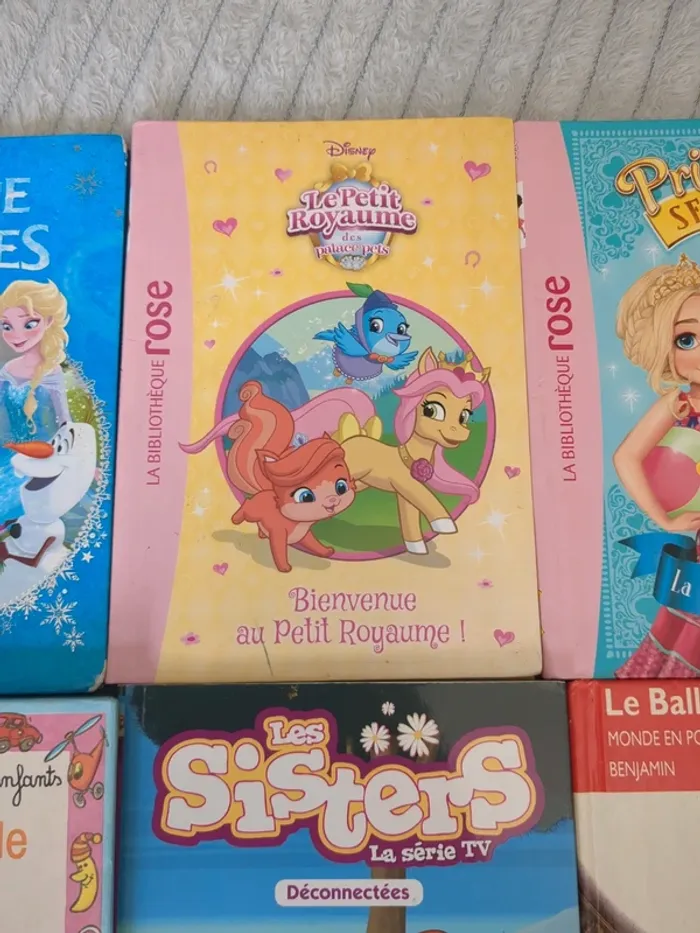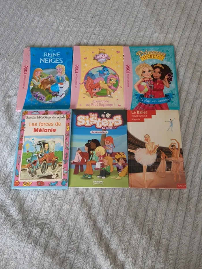 Livres en état variable , de neuf à satisfaisant selon le livre. 4€ le lot de 6 ou 1€ l'unité La reine des neiges, le petit royaume des palace pets , princesses secrètes la plage aux dauphins, les farces de Mélanie, les sisters, le ballet